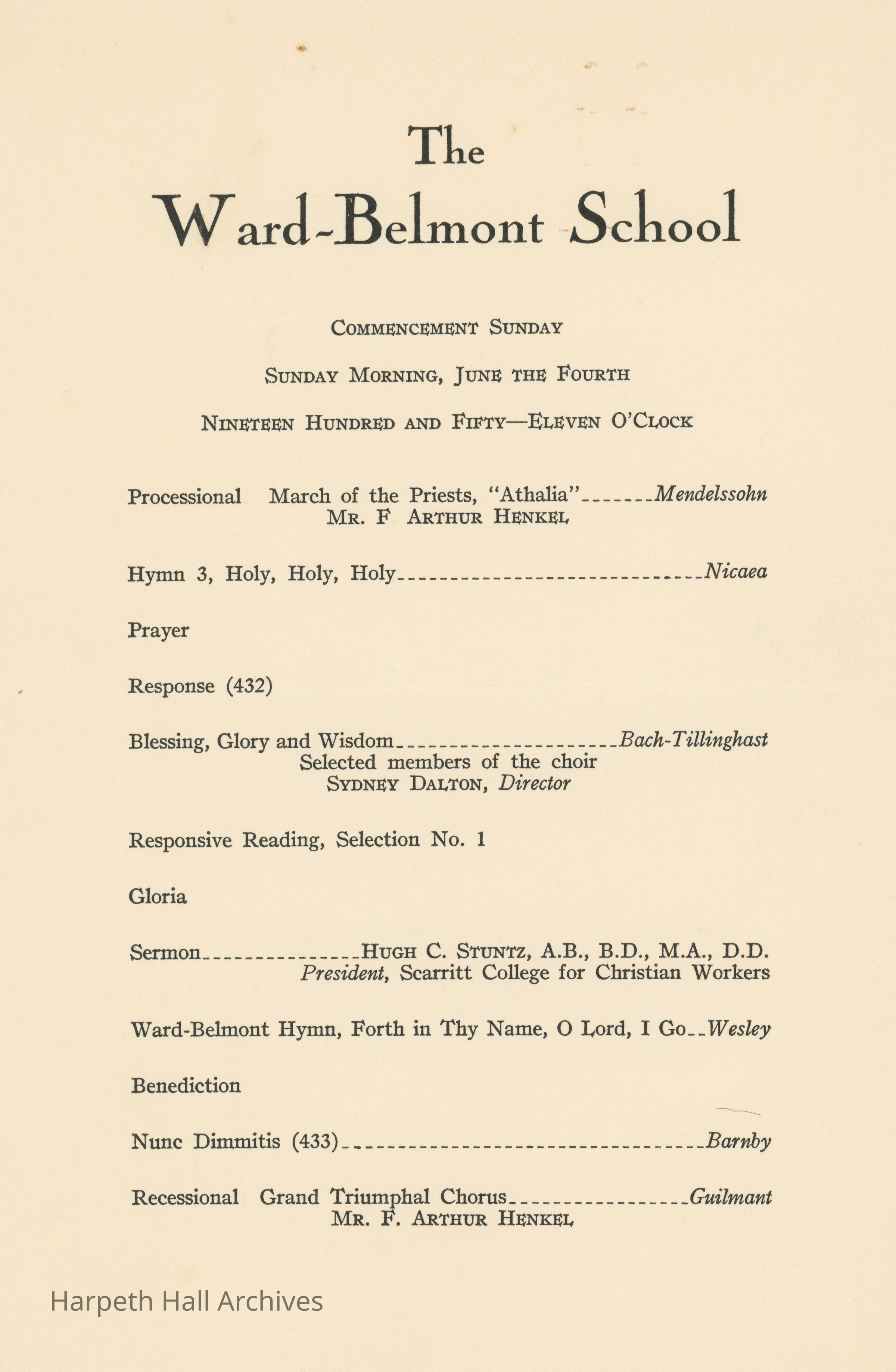 The program for Ward-Belmont's Commencement Sunday on June 4th, 1950.Collection