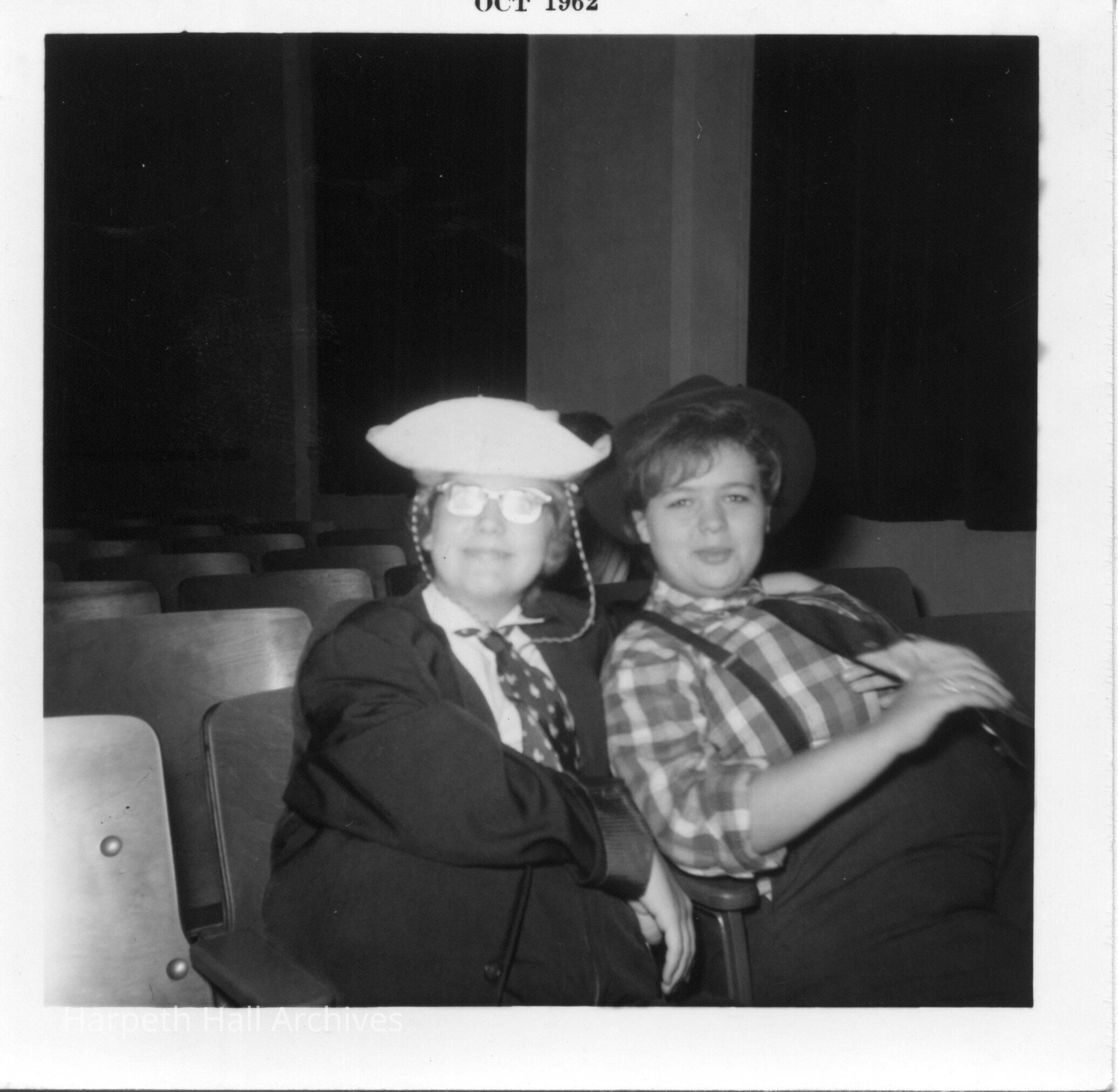 Students in costume sitting in the auditorium chairs in 1962.