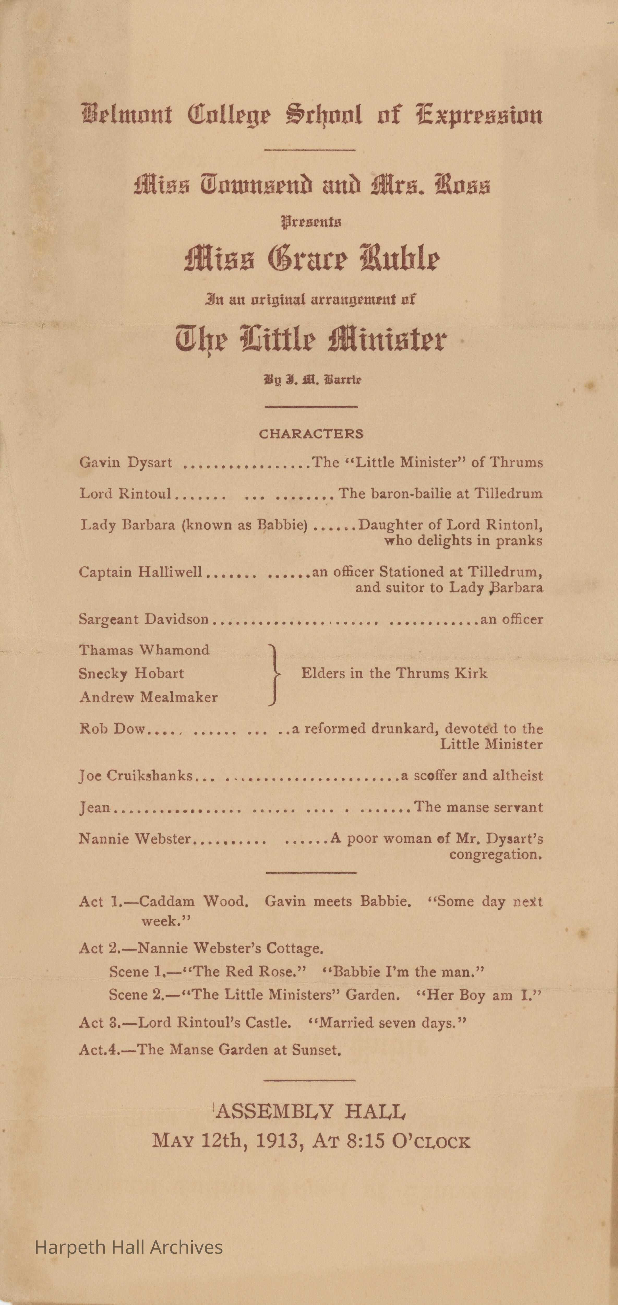 J. M. Barrie, Belmont College School of Expression, Grace Ruble, The Little MinisterRelationships