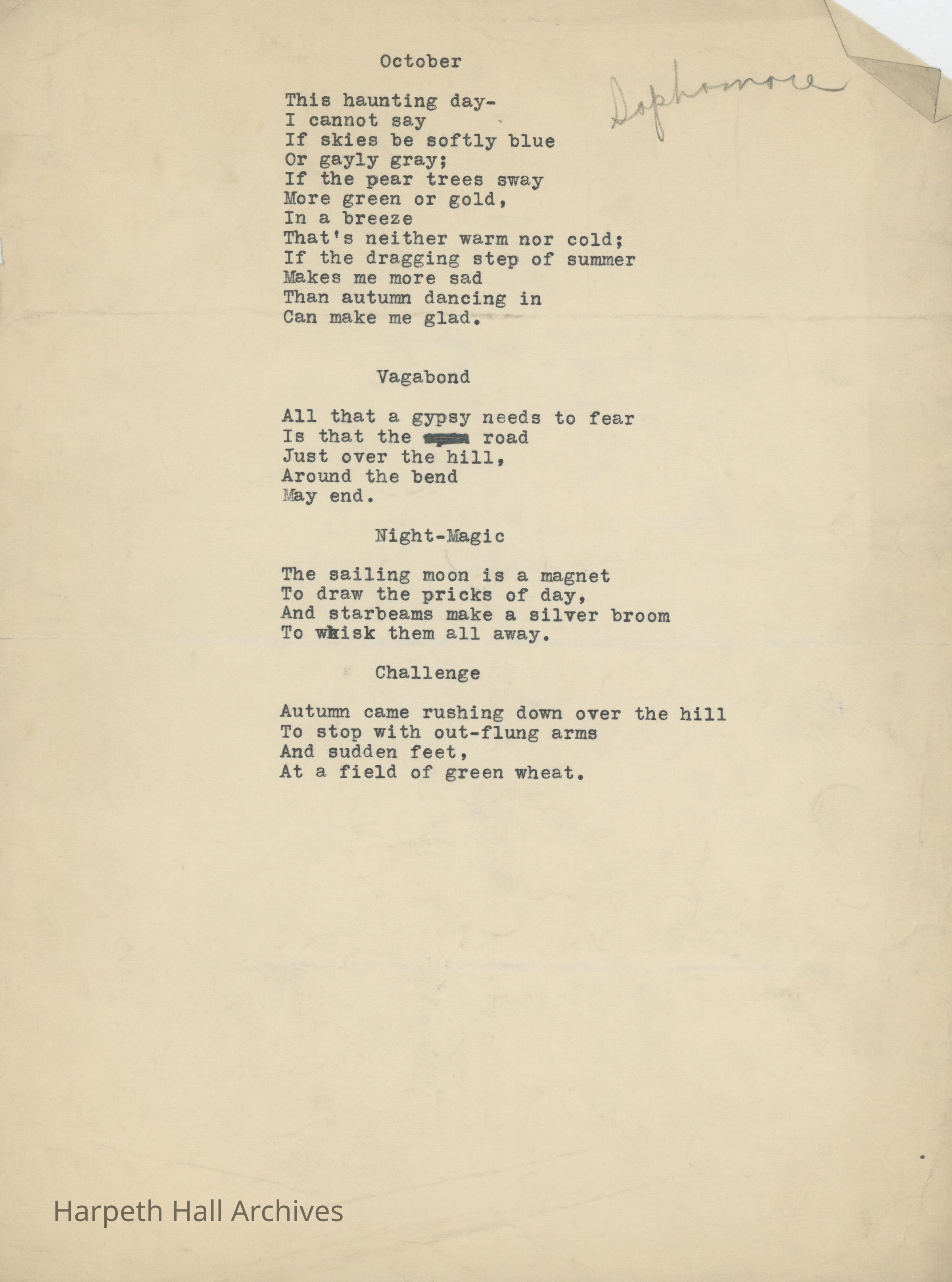 Poems written by Ward-Belmont sophomore Catherine Crossan in 1934.