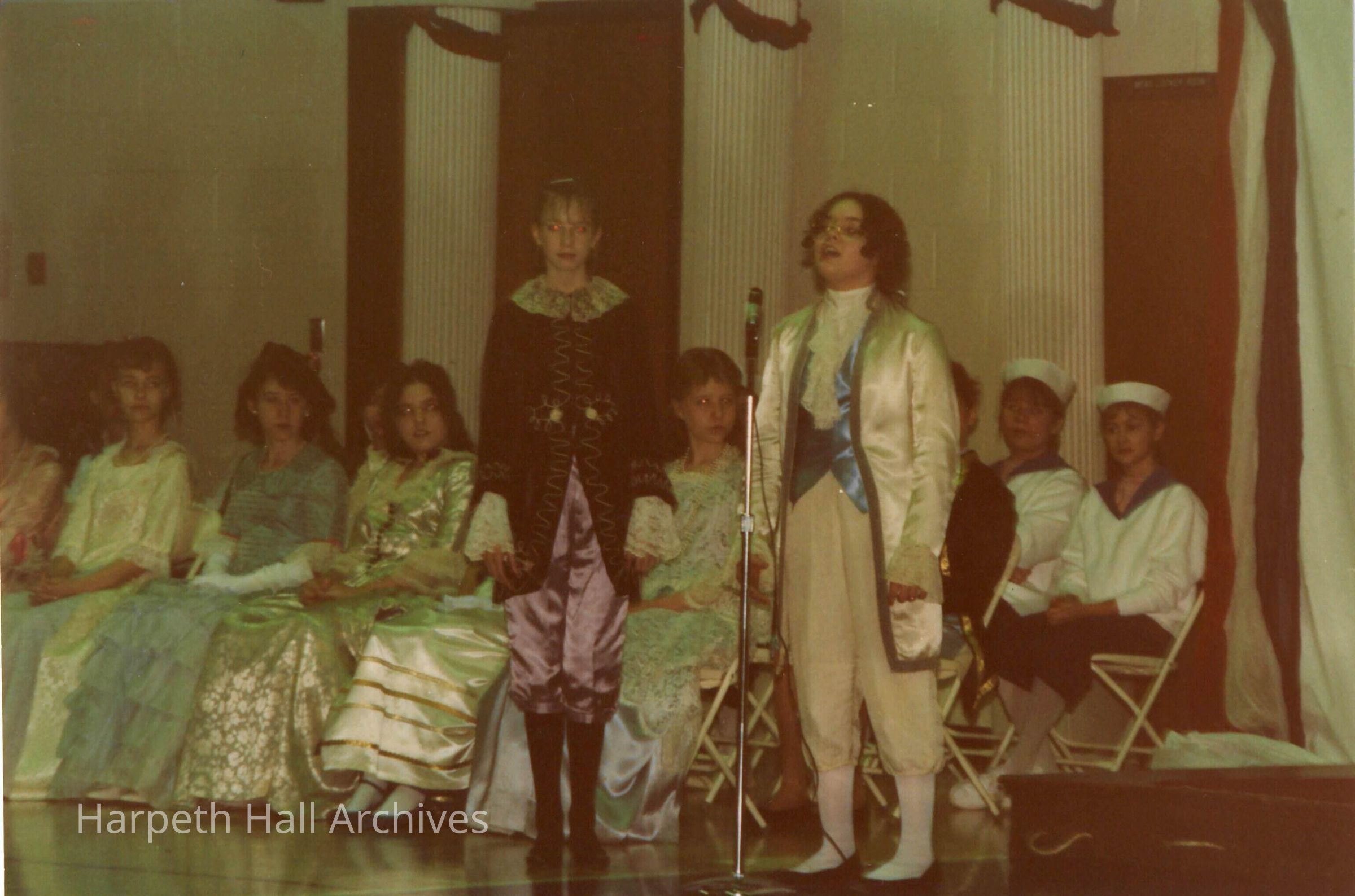 Students performing in costume in the George Washington Day Celebration.Context