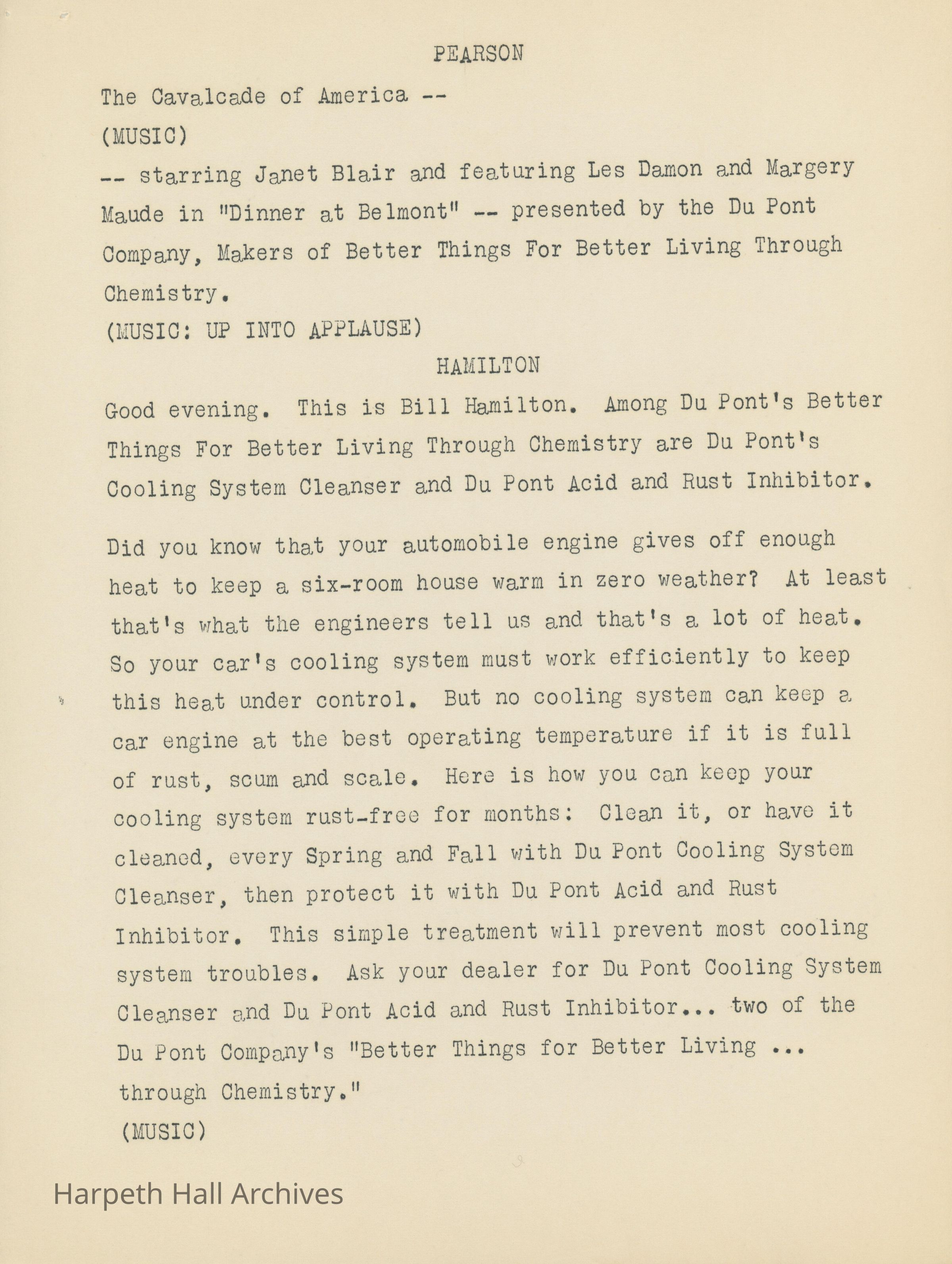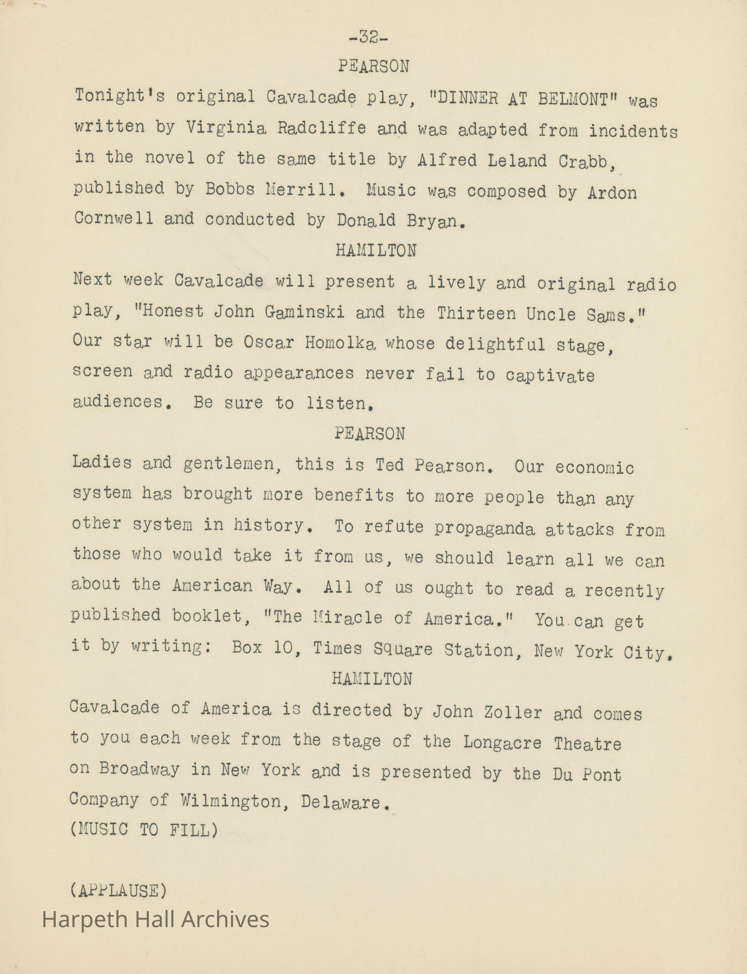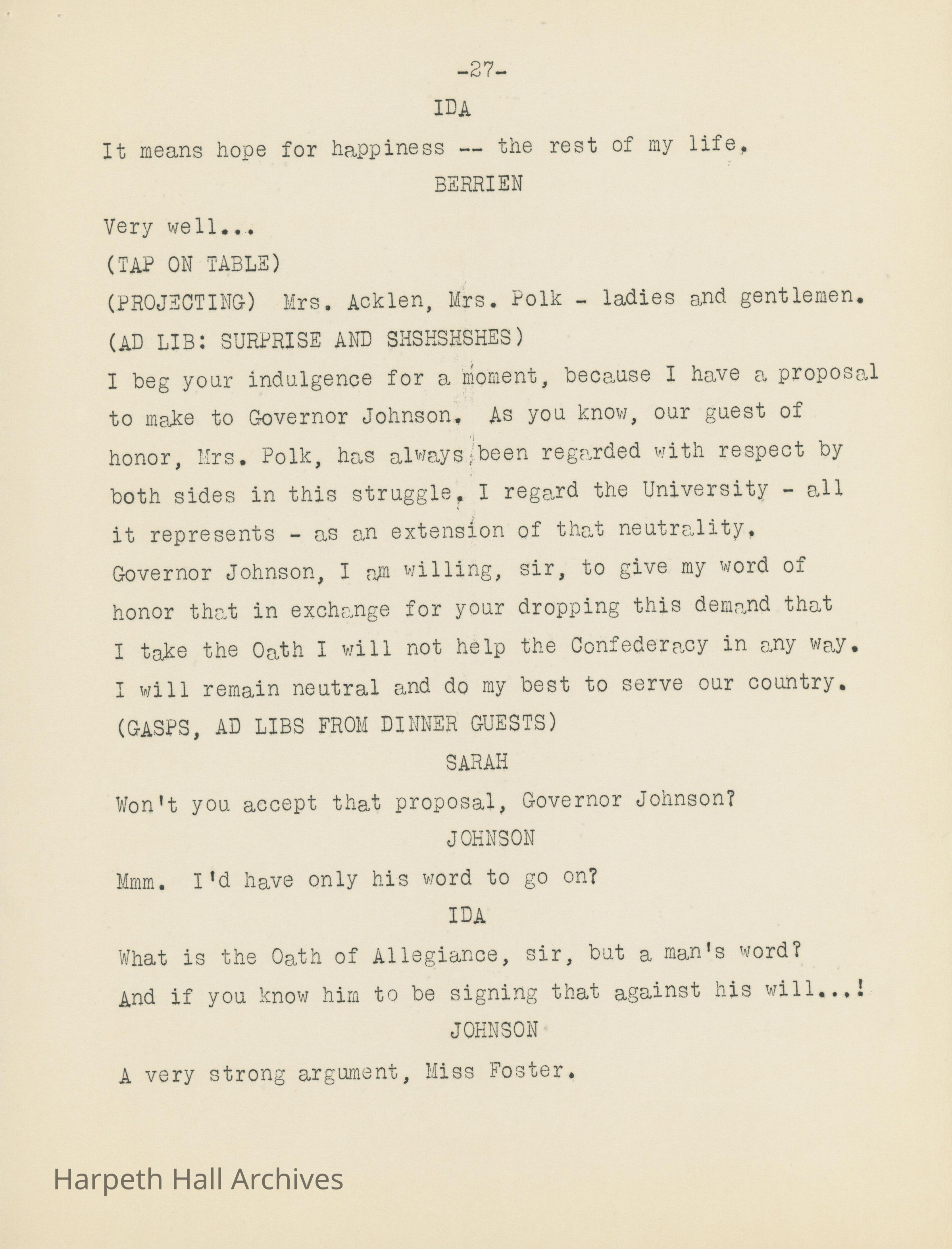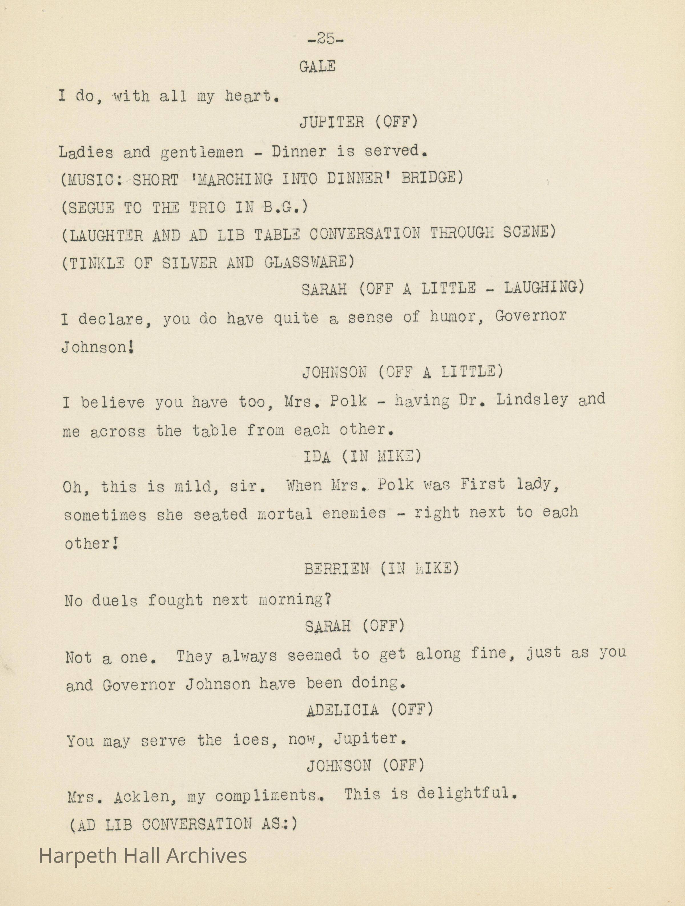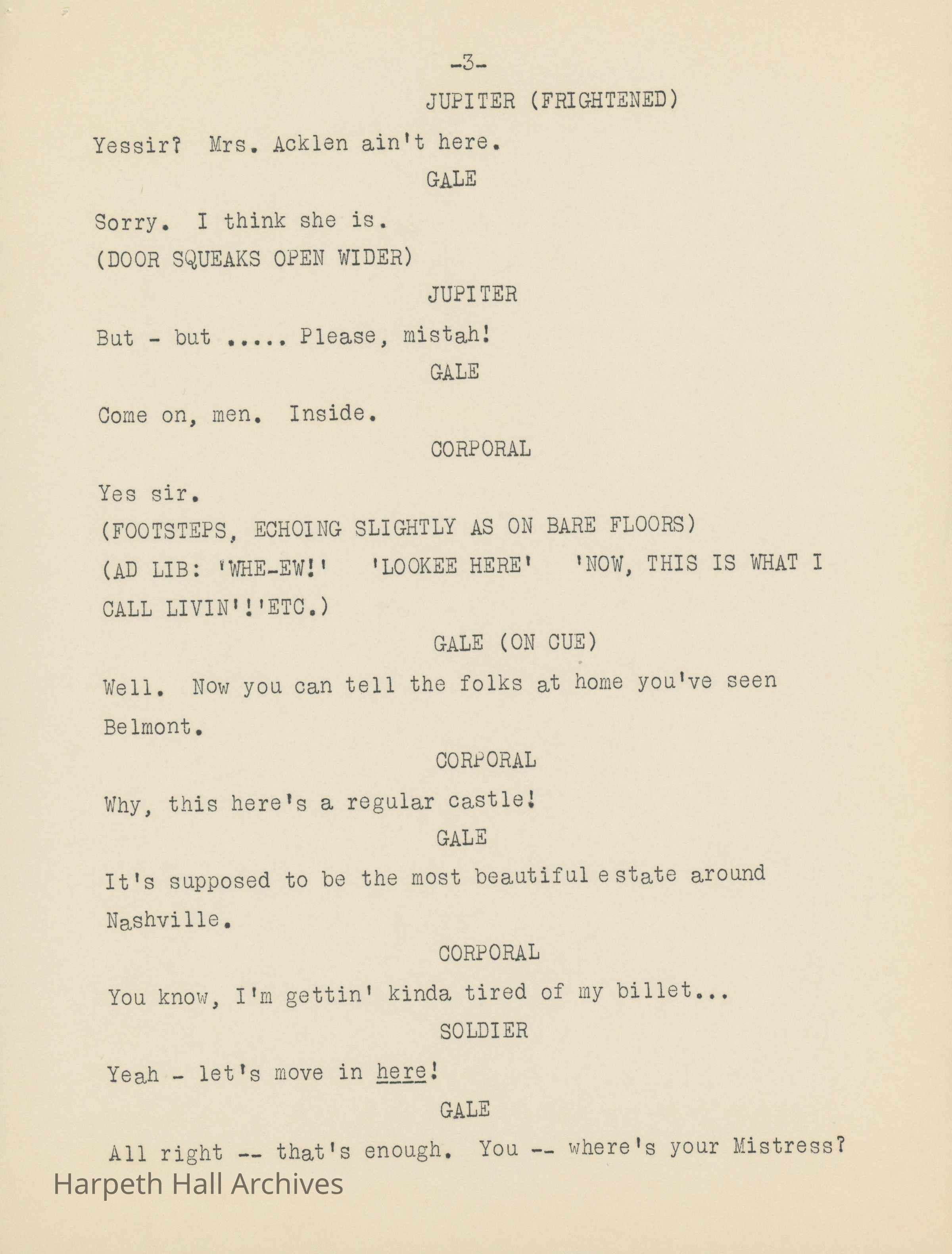Ward-Belmont's script of "Dinner at Belmont" written by Virgina Radcliffe dated on April 11th, 1949.Collection