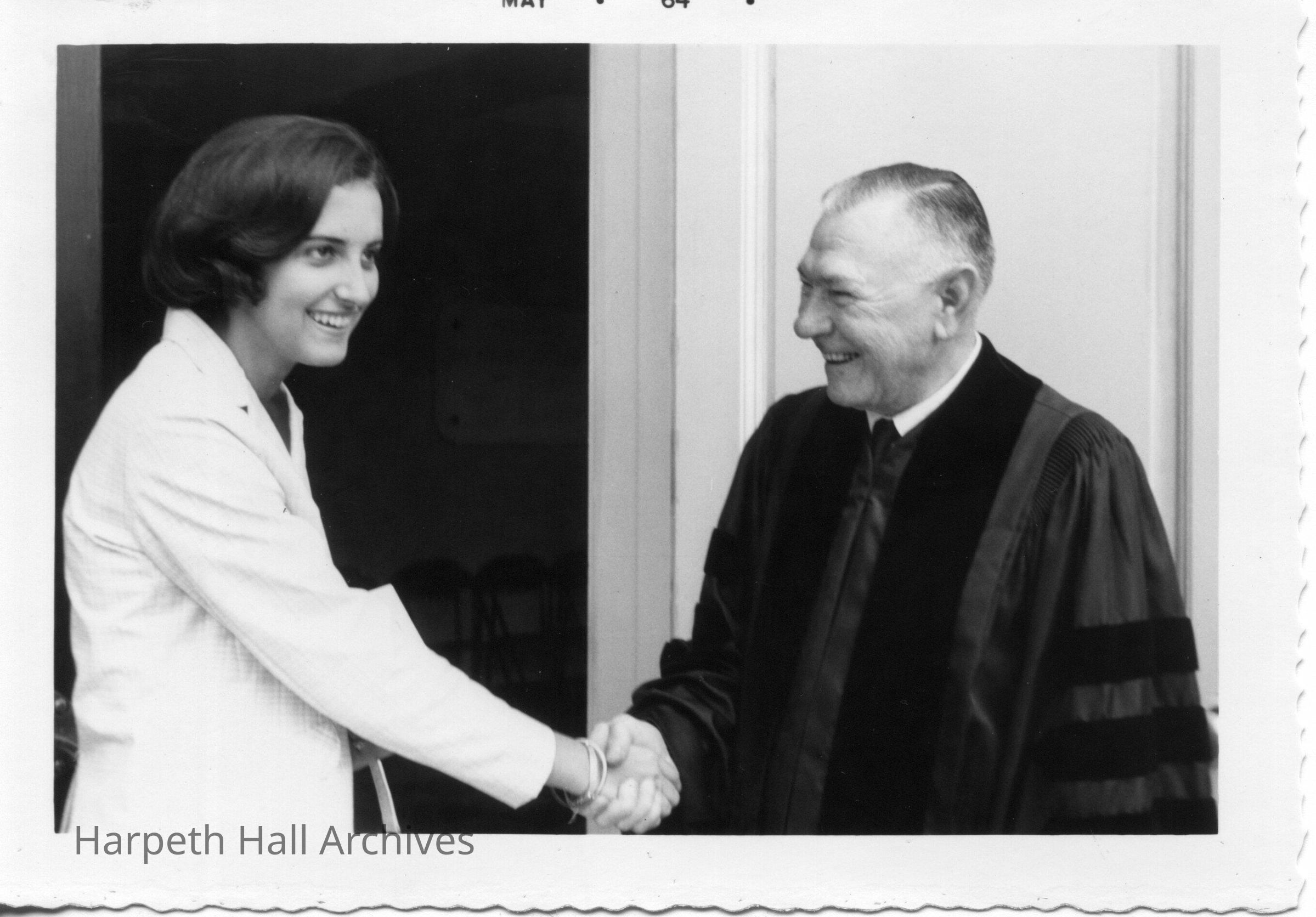 Student shaking hand of a clergyman in May of 1964.