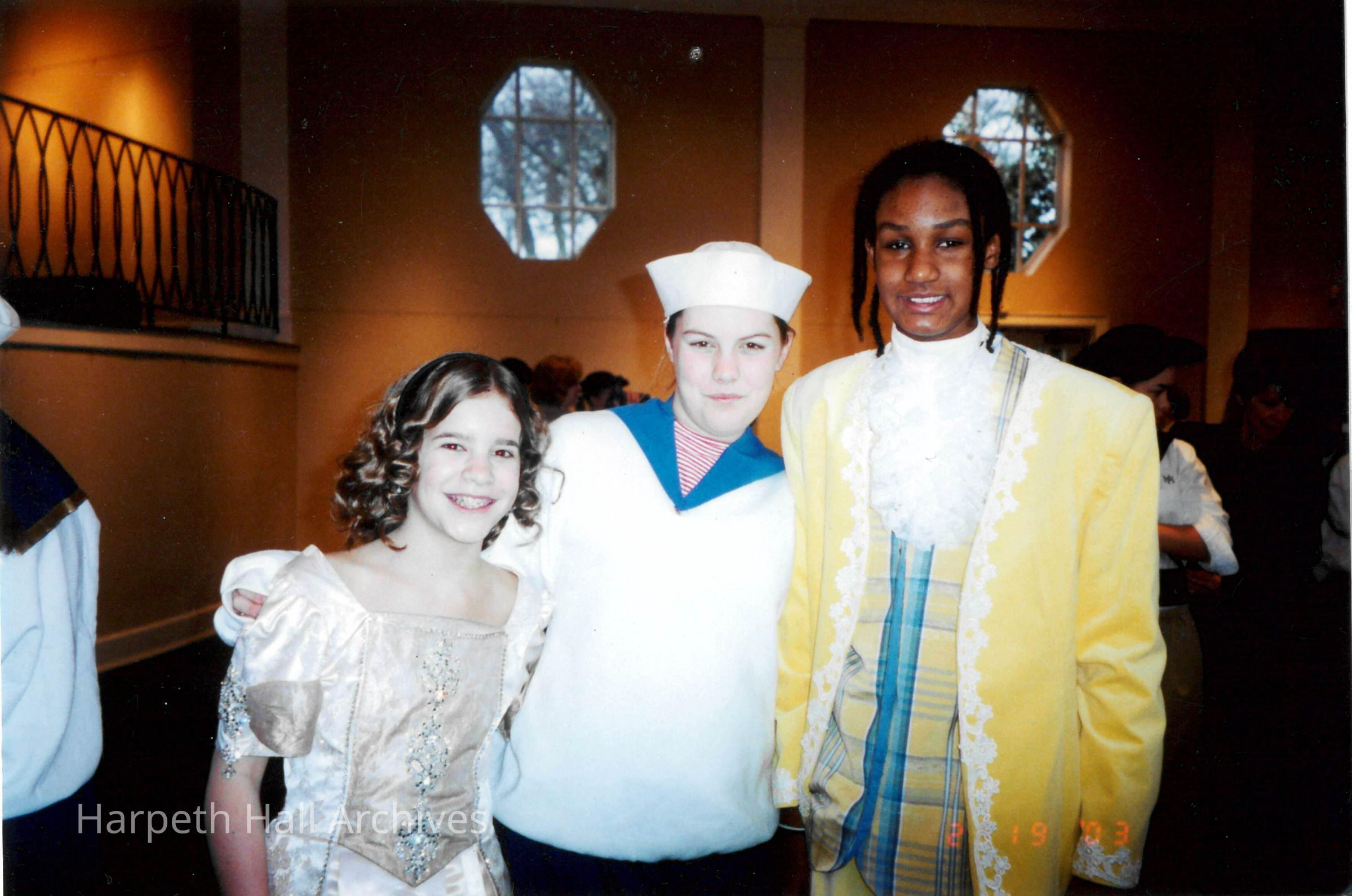 A group of seventh grade students who performed in the George Washington Day Celebration on February 19, 2003. The students are from the class of 2008, and the photo is taken in the Marnie Sheridan Gallery in the McMurry Center.Context