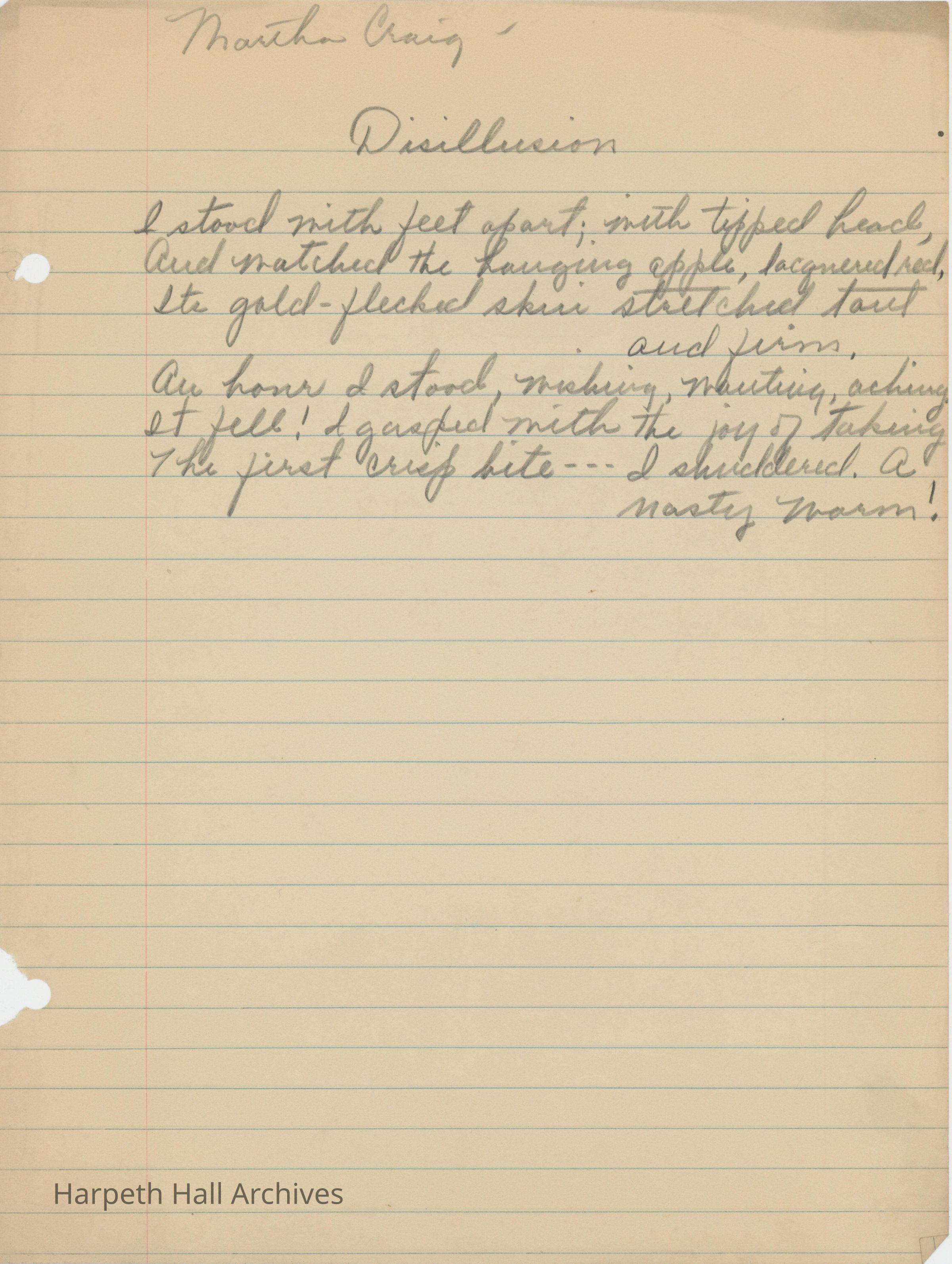A poem entitled, "Disillusion" written by Ward-Belmont student Martha Craig.