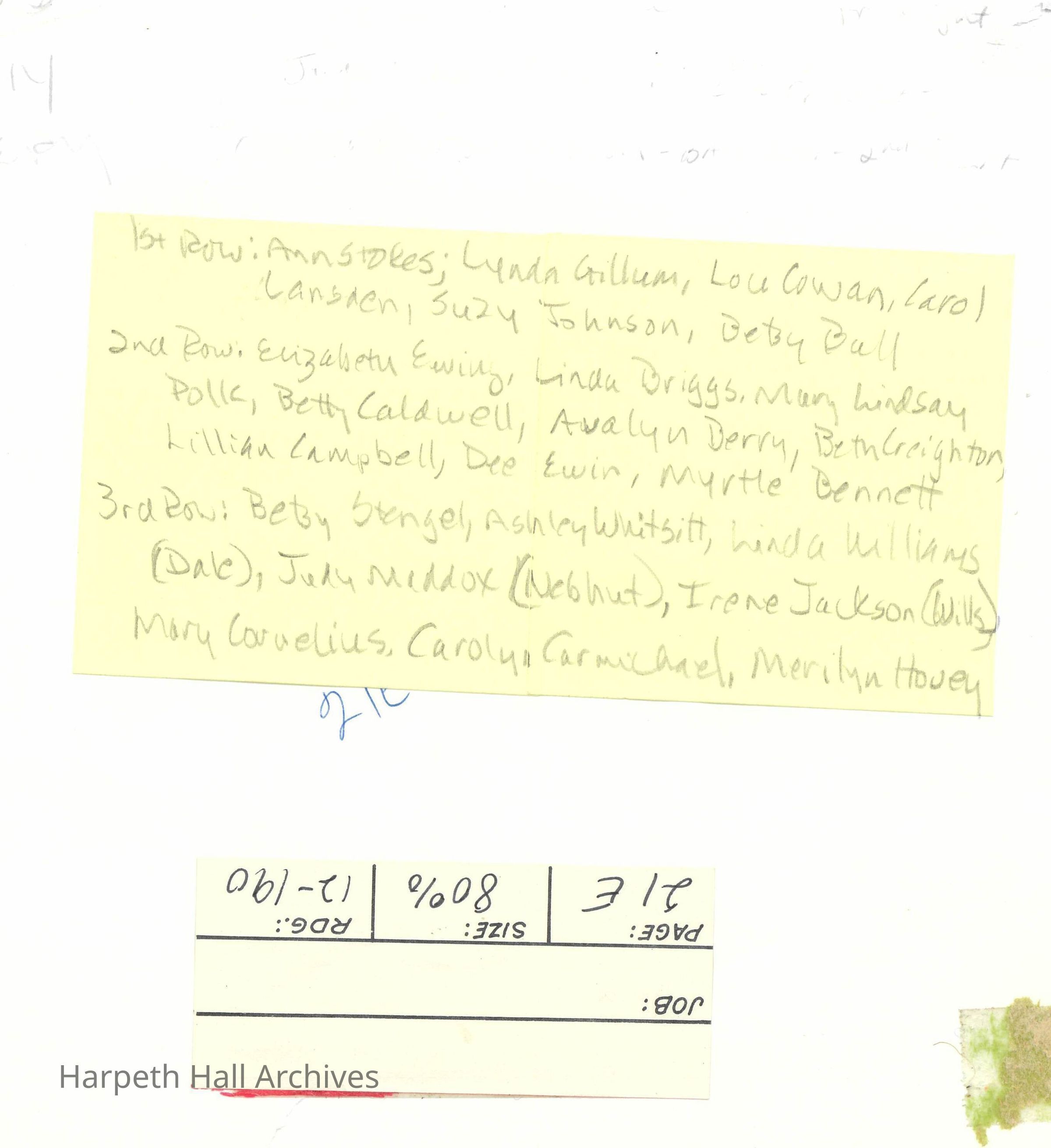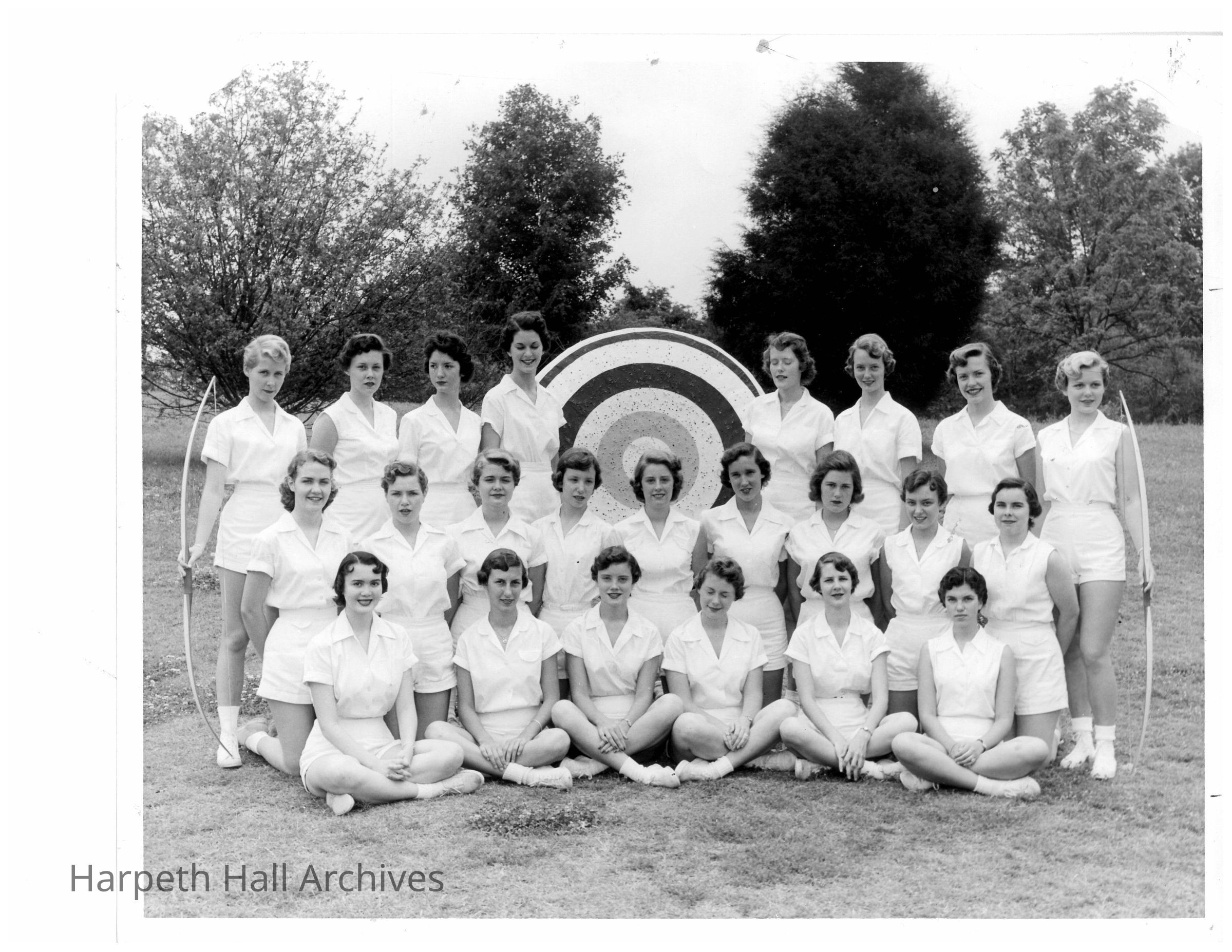 Harpeth Hall students pose for 1954 Varsity Archery team photograph (students names are listed on back of the photo)