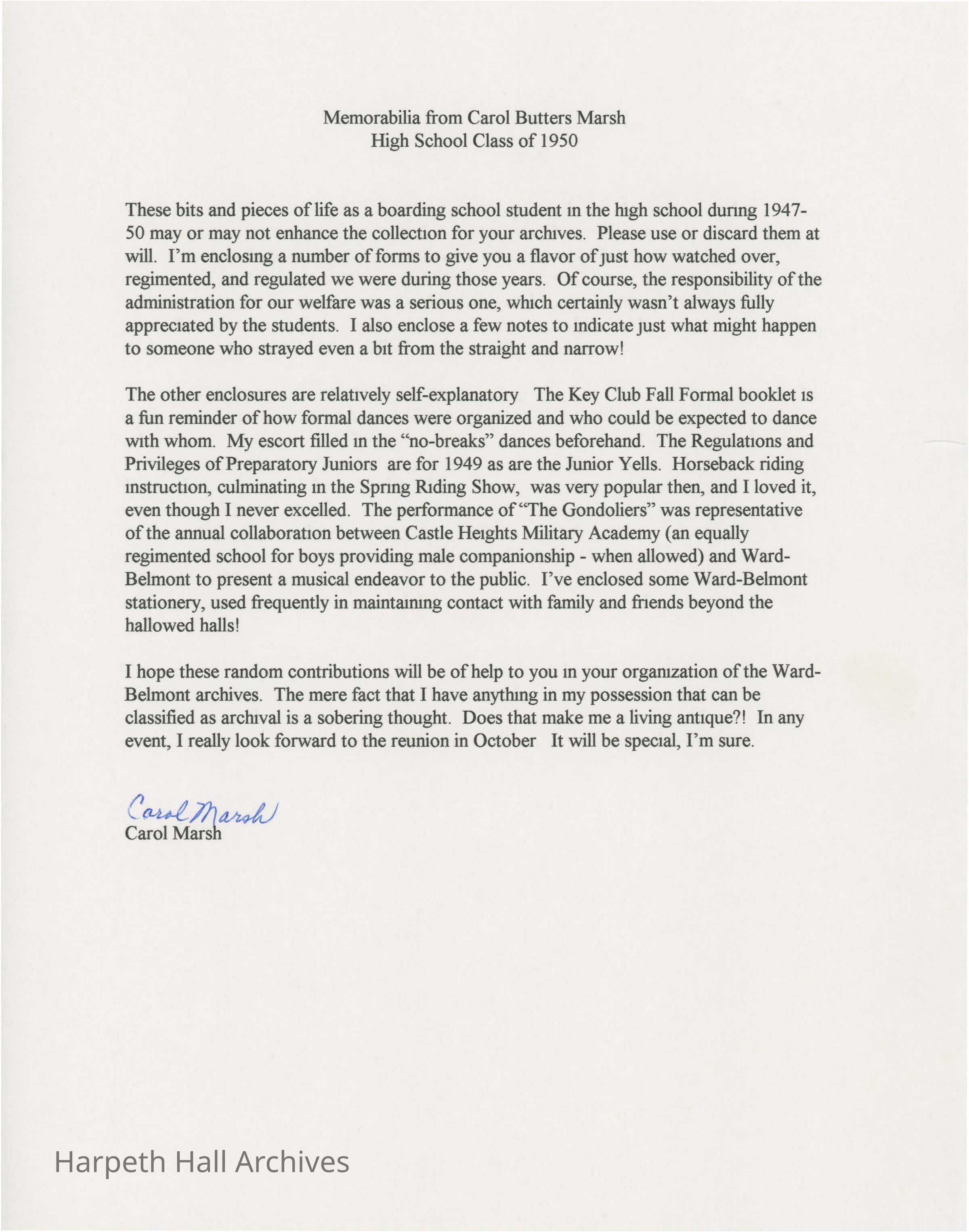 Memorabilia from Carol Butters Marsh, Class of 1950Collection