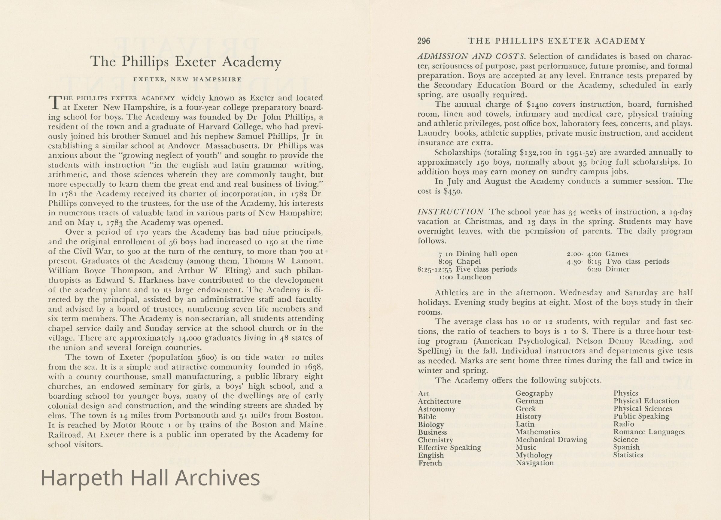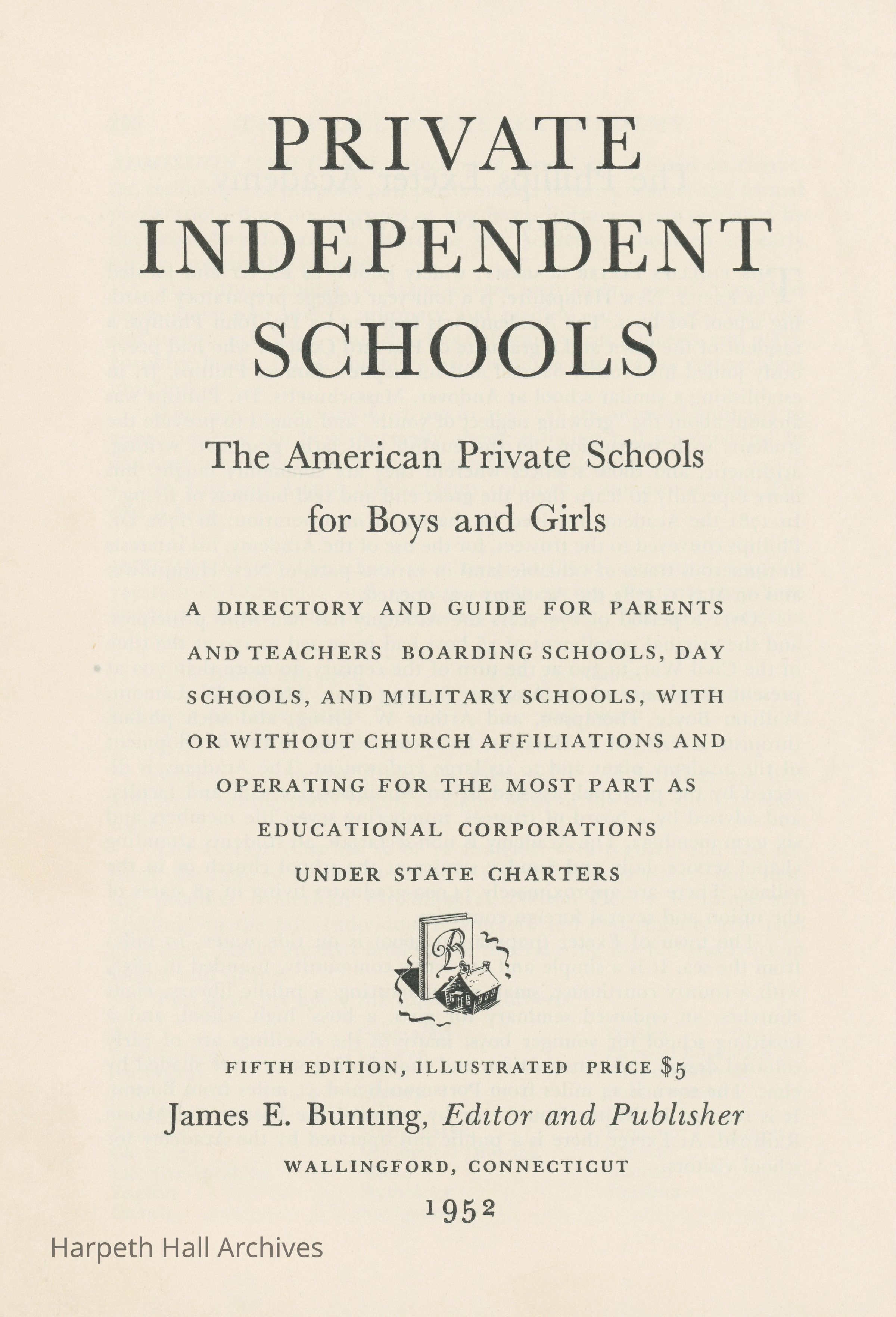 "Private Independent Schools: The American Private Schools for Boys and Girls" pamphlet. It is a directory and guide for parents and teachers. Boarding schools, day schools, and military schools, with or without church affiliations and operating for the most part as educational corporations under state charters located in New Hampshire, Connecticut, Virginia, and Washington.Collection