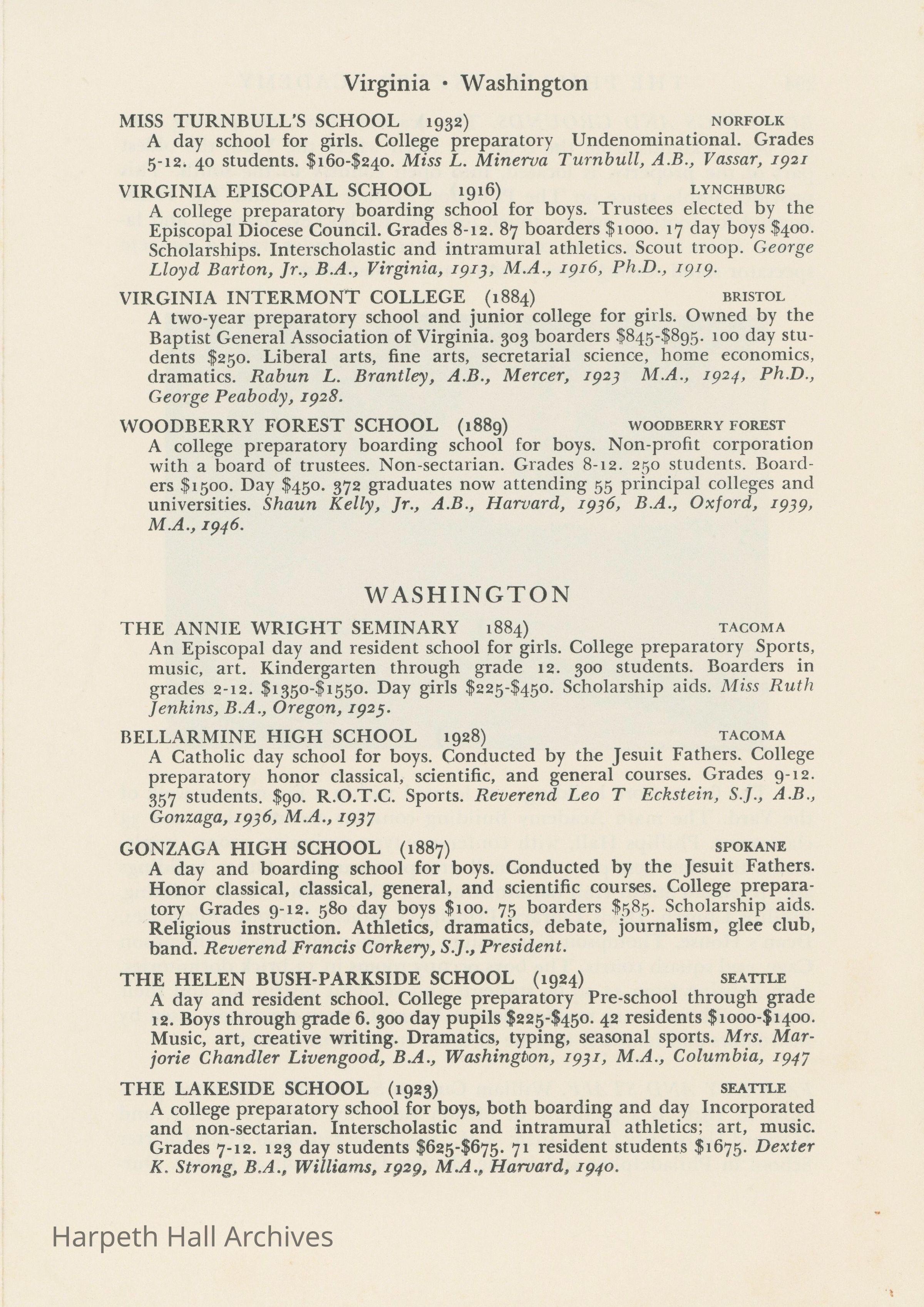 Private Independent Schools Catalog, 1952Entry/Object ID