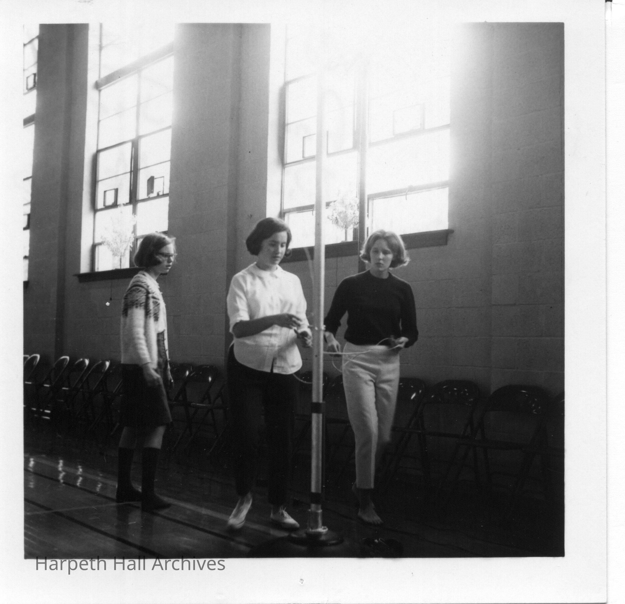 Lil Dobson, Ann Dives, Judy Nelson in Bullard gym.