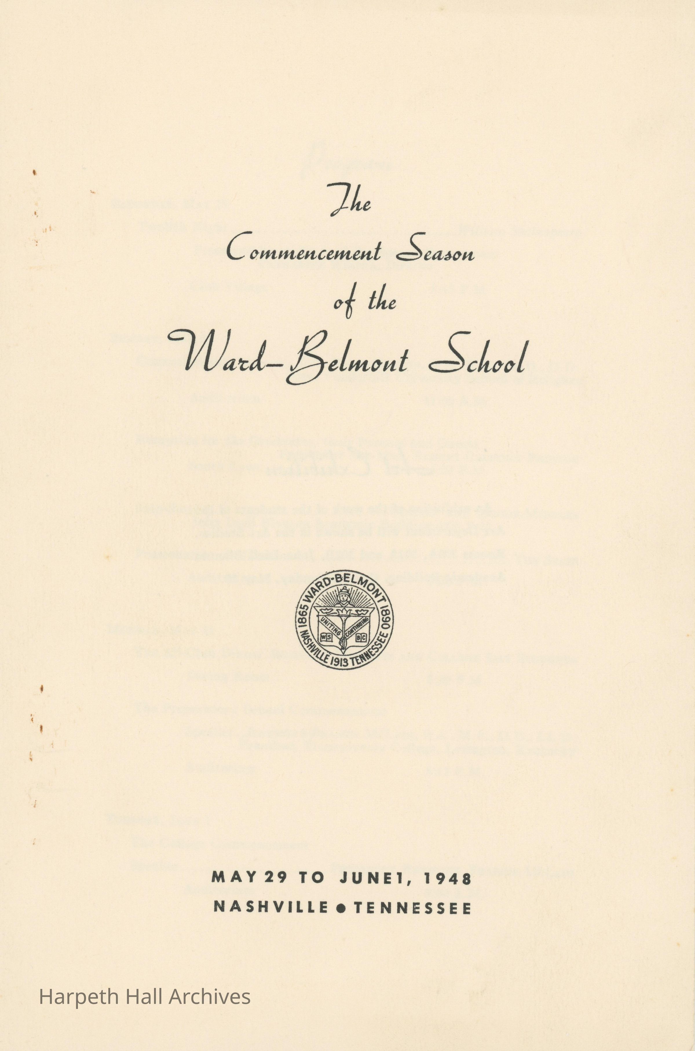 The program for Ward-Belmont's Commencement Season that took place from May 29th to June 1st of 1948.Collection