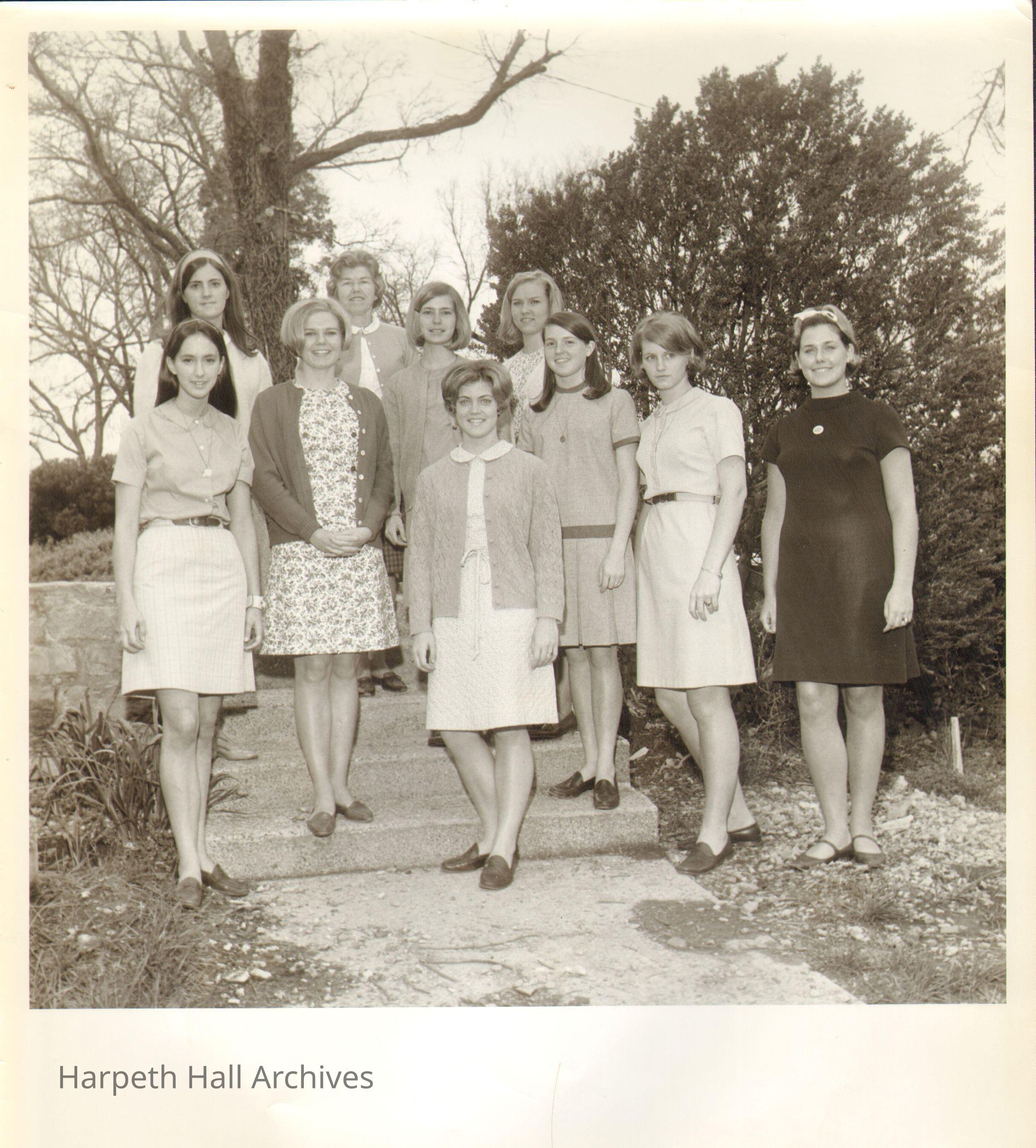 1968 students in a outside group shot. Leigh Zerfoss Atkins (1968) is in this photo as well as Patty Litton Chadwell (1935). Could possibly be an athletic organization.