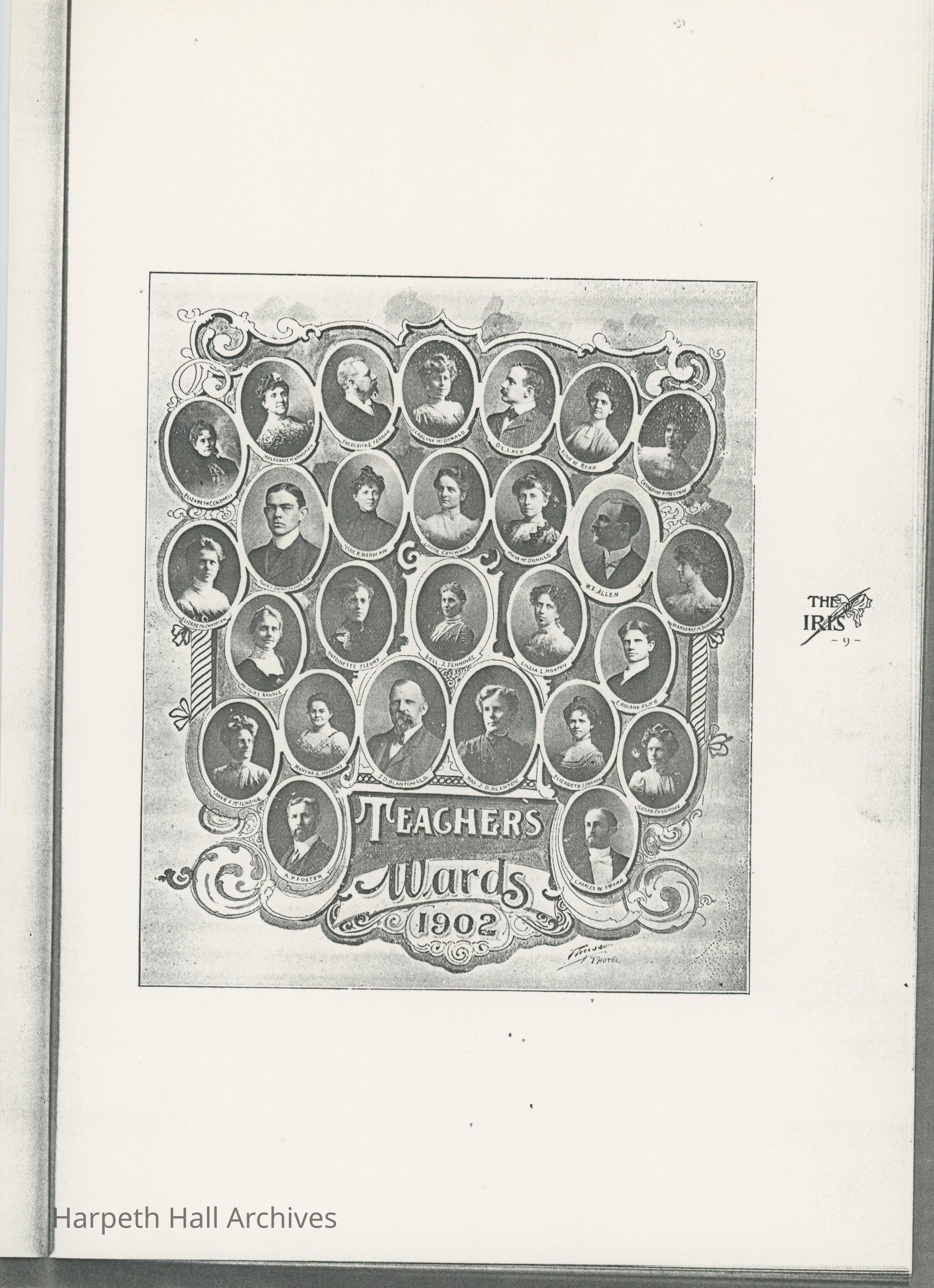 Snippets of various faculty pages from Ward Seminary's yearbook, the Iris. The yearbooks dates are 1900, 1902, 1903, and 1913.Collection