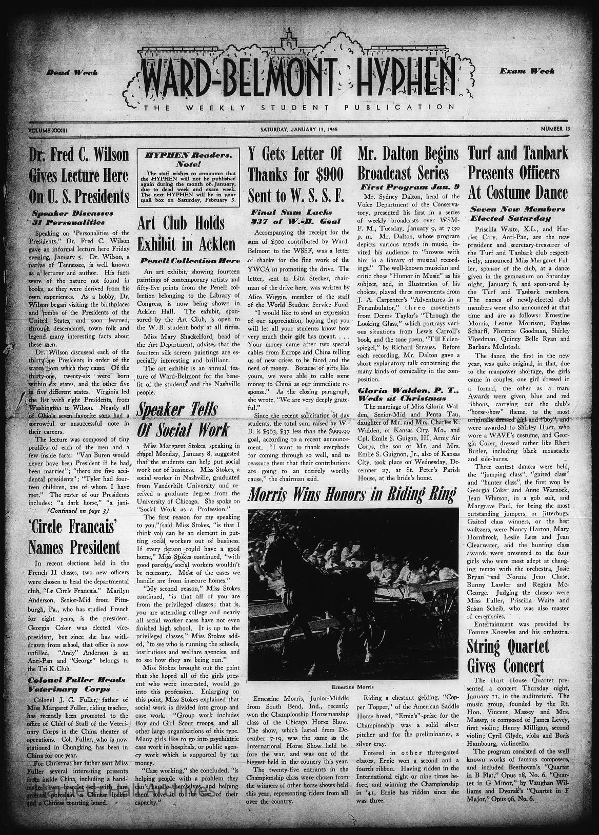 The link to see the online digitized copy of all of the Ward Belmont newspapers from 1945 is at the bottom of the page under "Web Links"!
