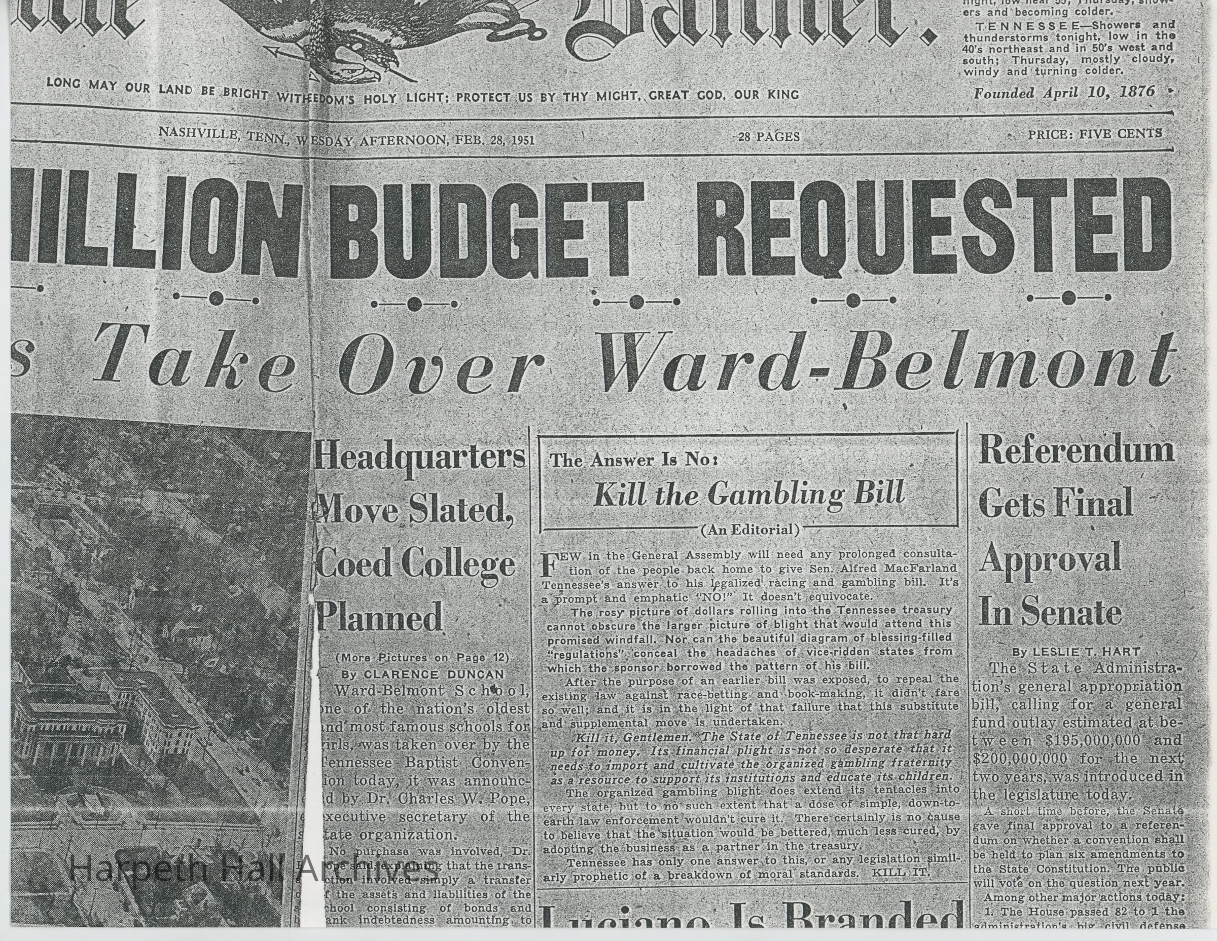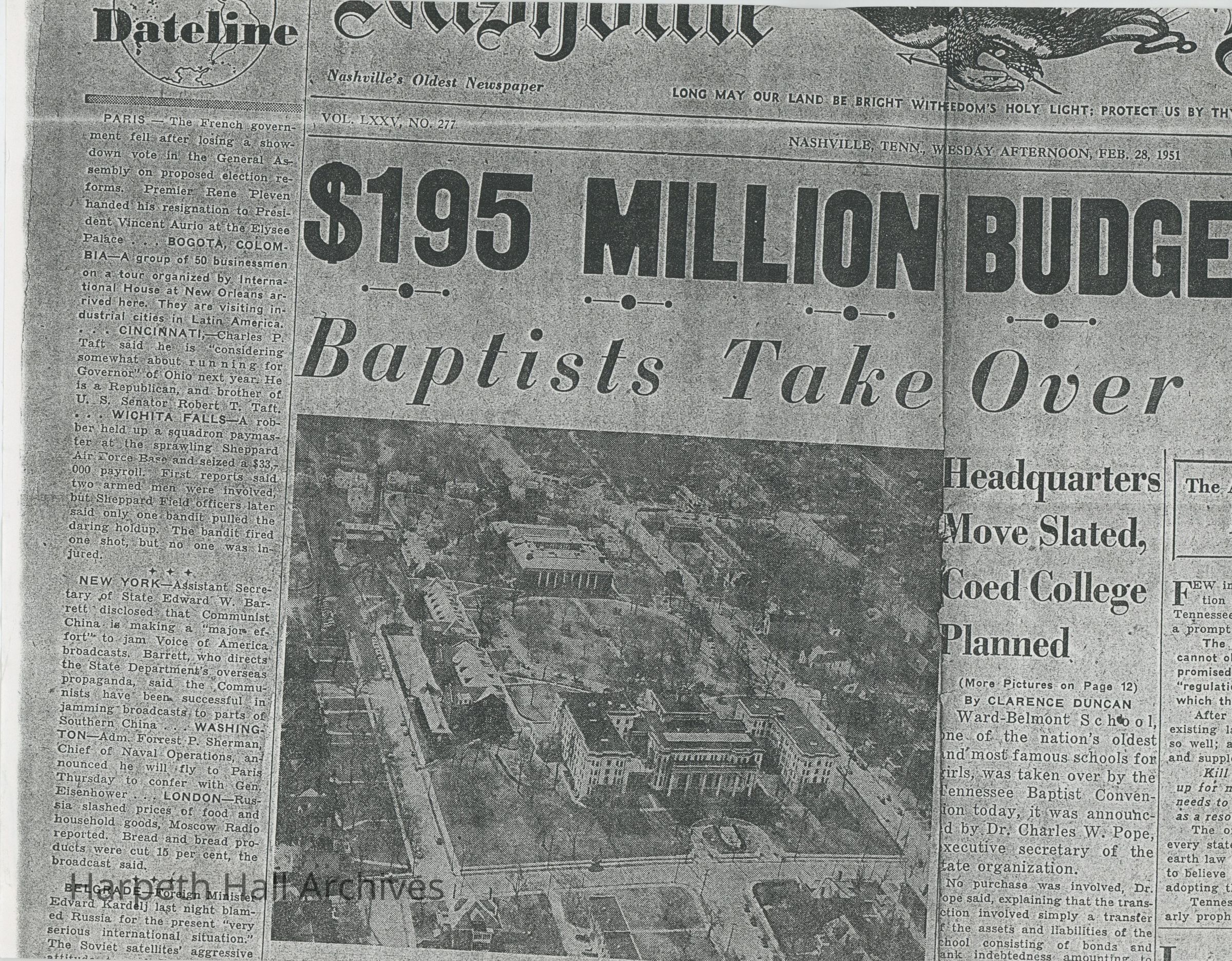 Article on Ward-Belmont's Baptist Takeover, February 1951