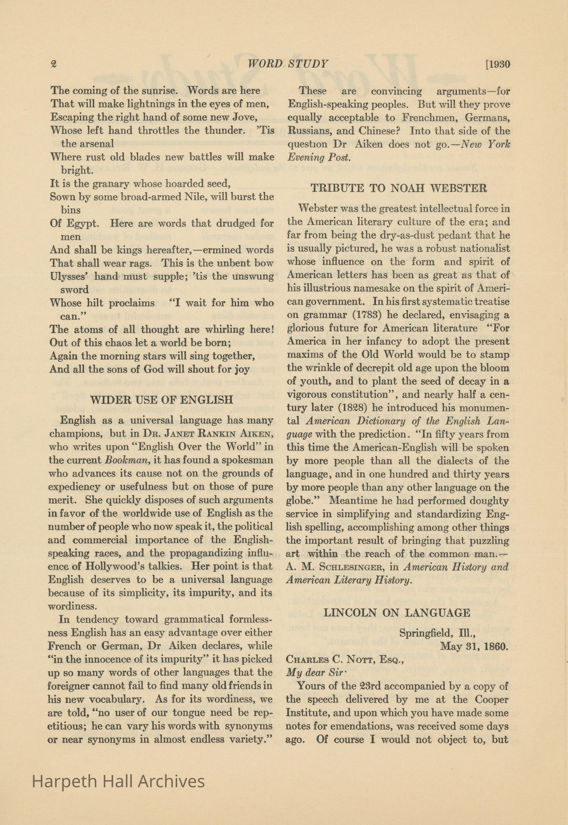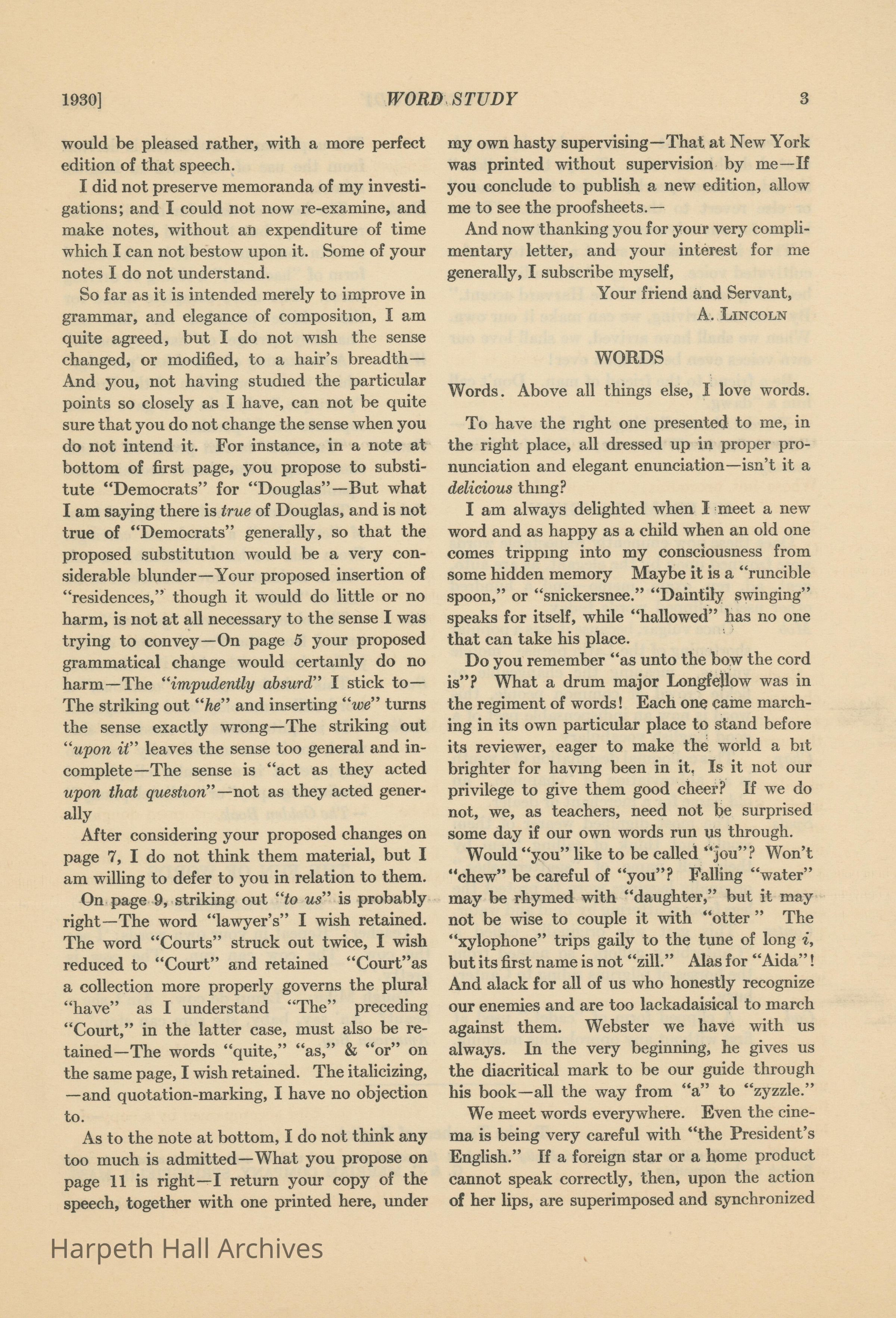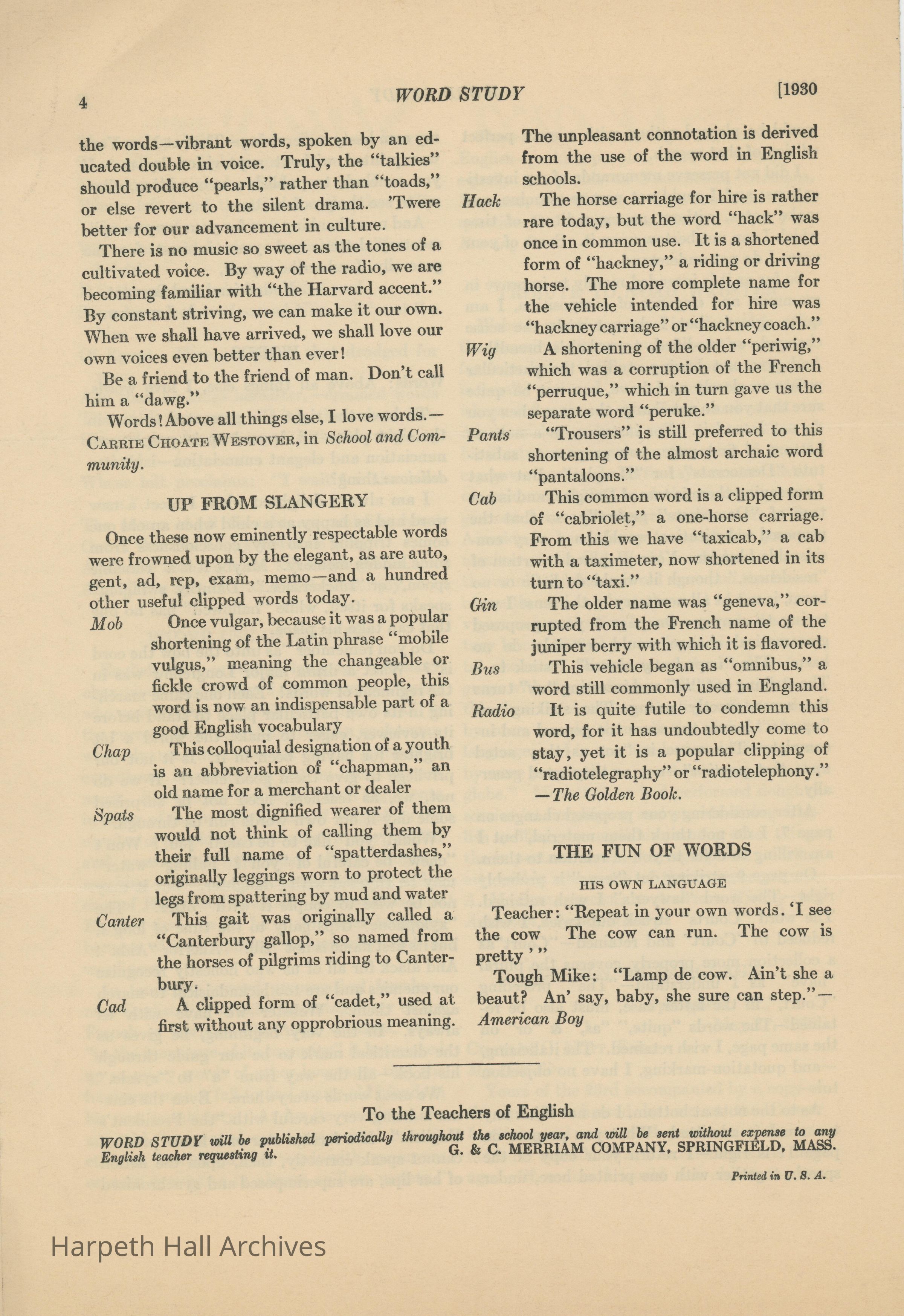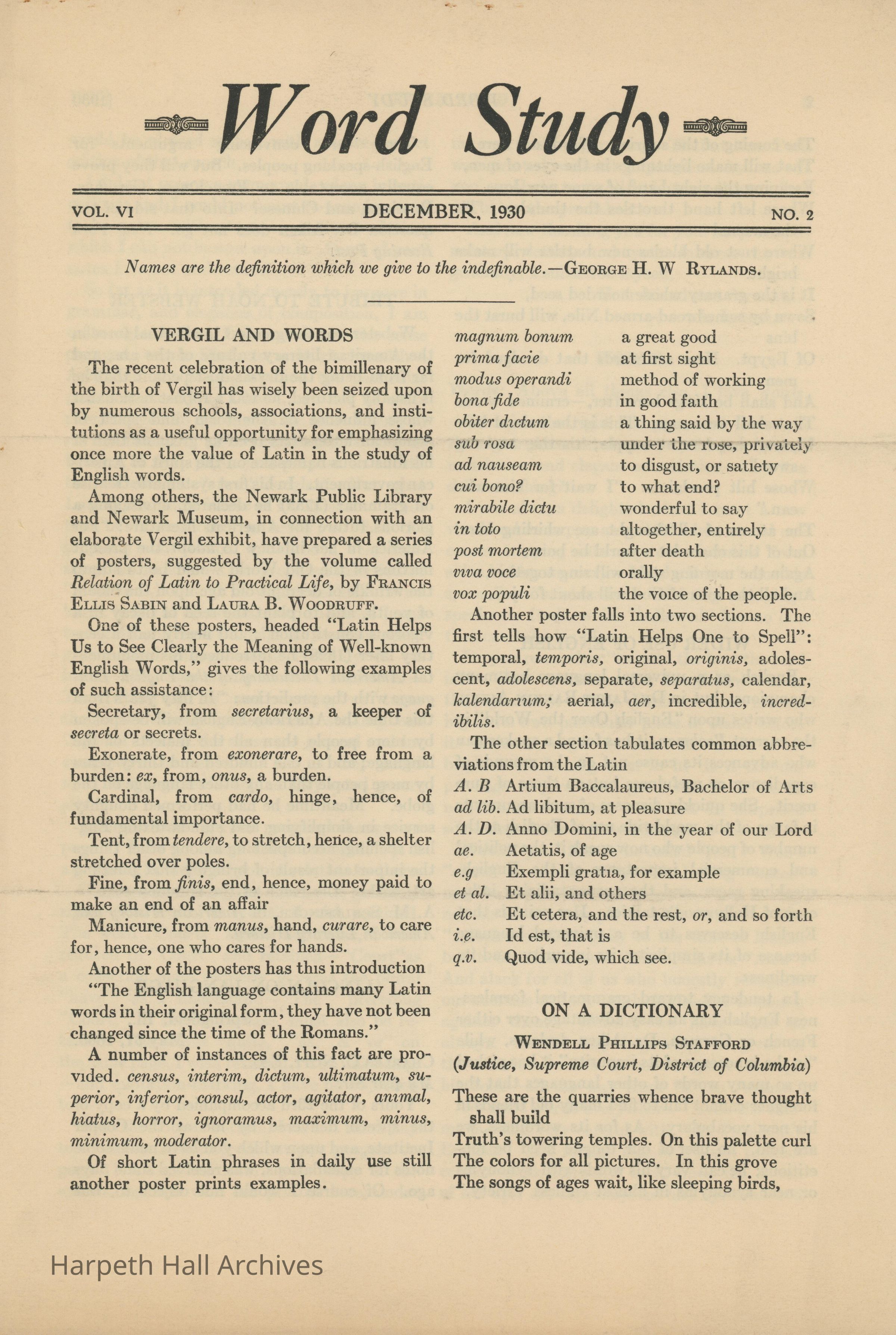 The December 1930 edition of Word Study. Word Study was published periodically throught the school year and was sent to English teachers across the country.Collection