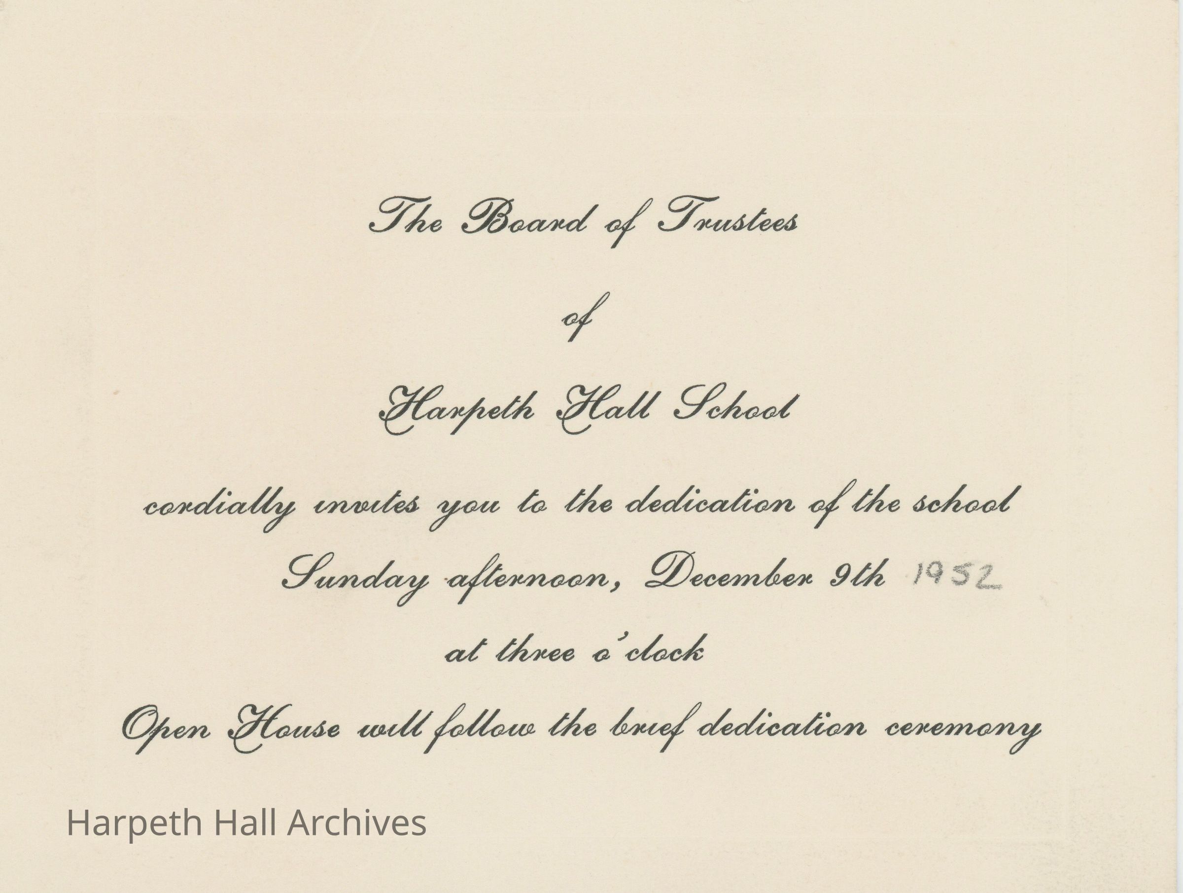 Invitation from Harpeth Hall's Board of Trustees for a formal dedication of the school and an open house.