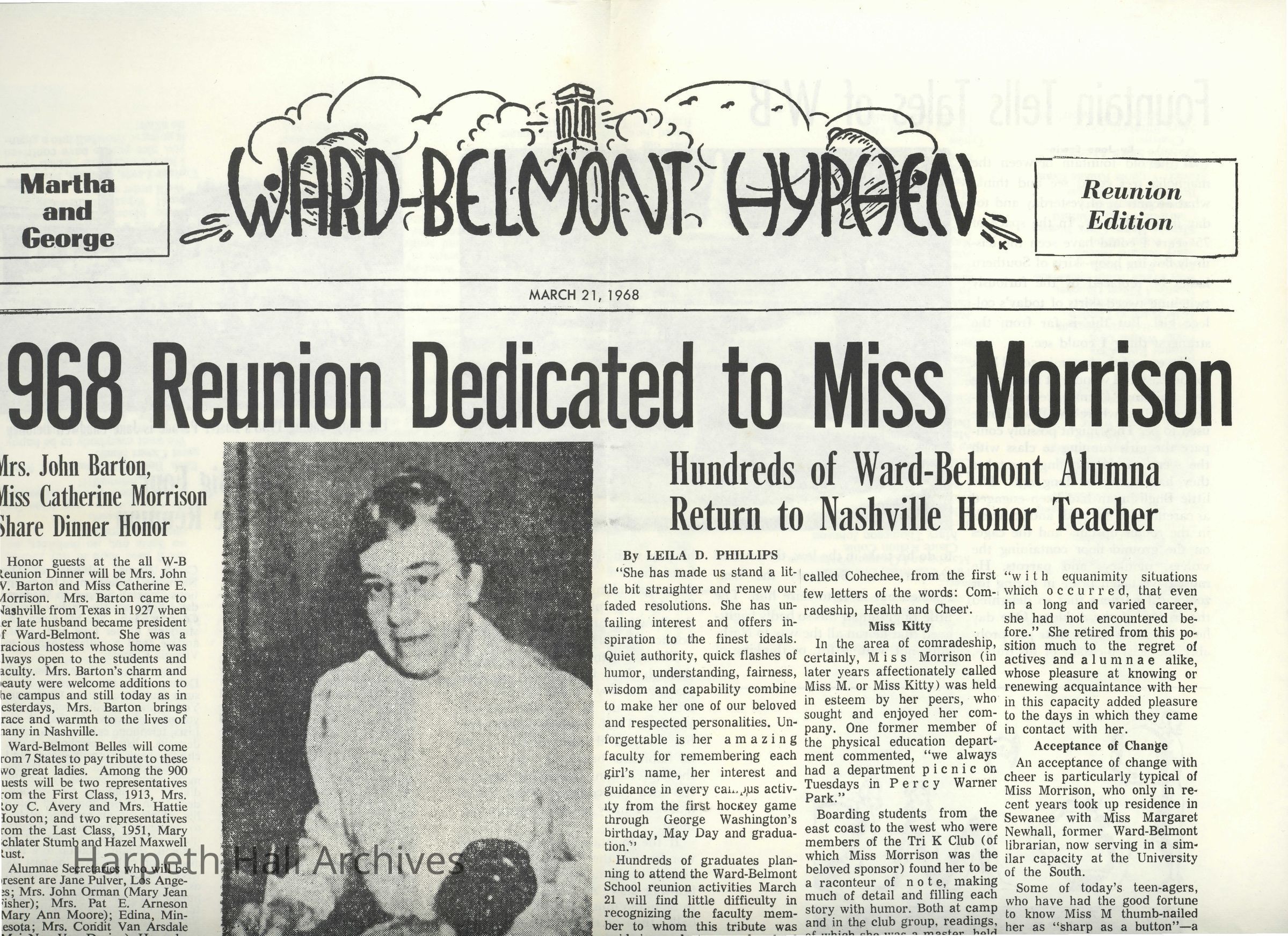 Ward-Belmont Hyphen Reunion Edition "1968 Reunion Dedicated to Miss Morrison"