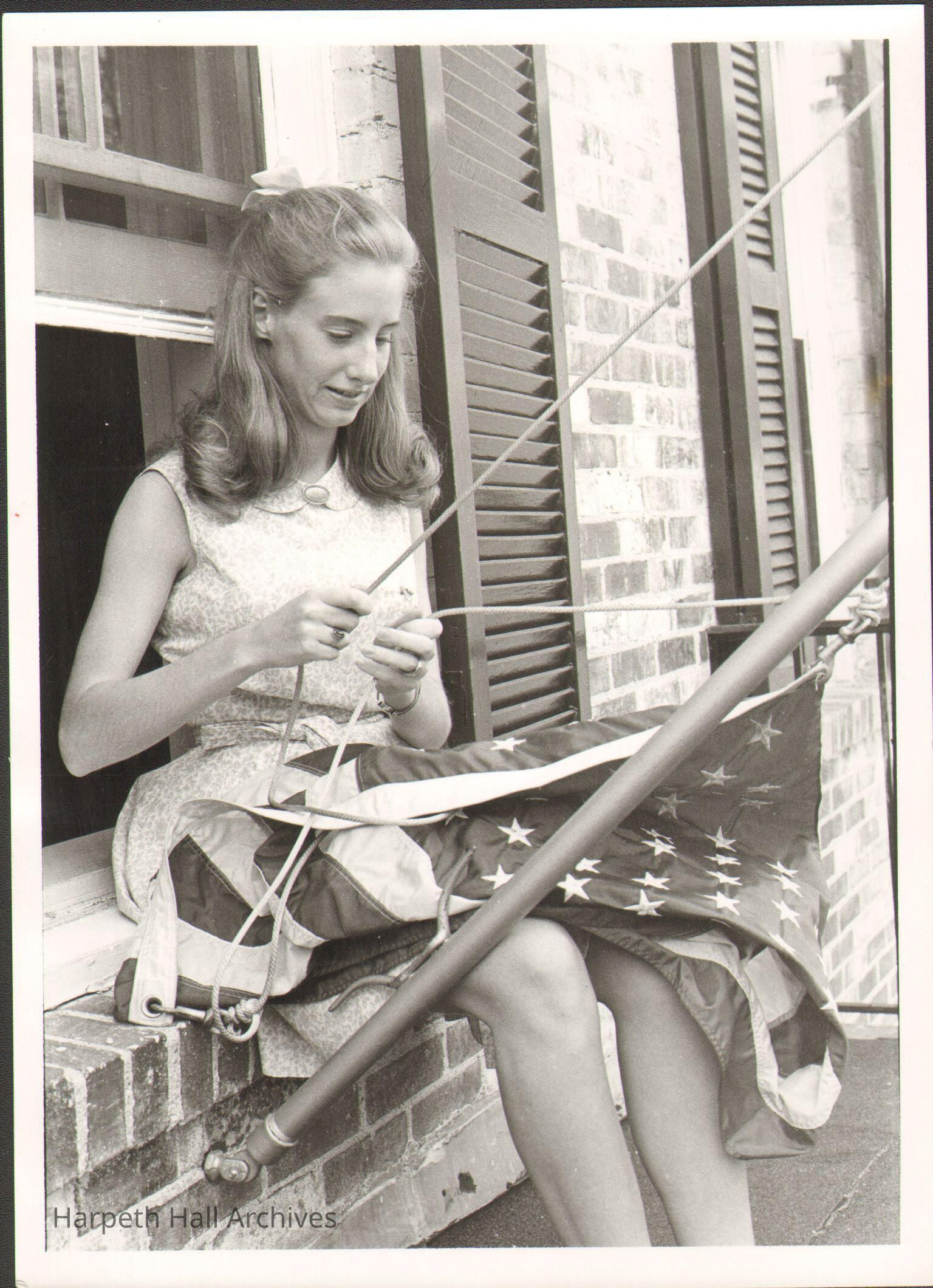 Mary Follin Simonsen (1969) raising or taking down the American flag in 1969.