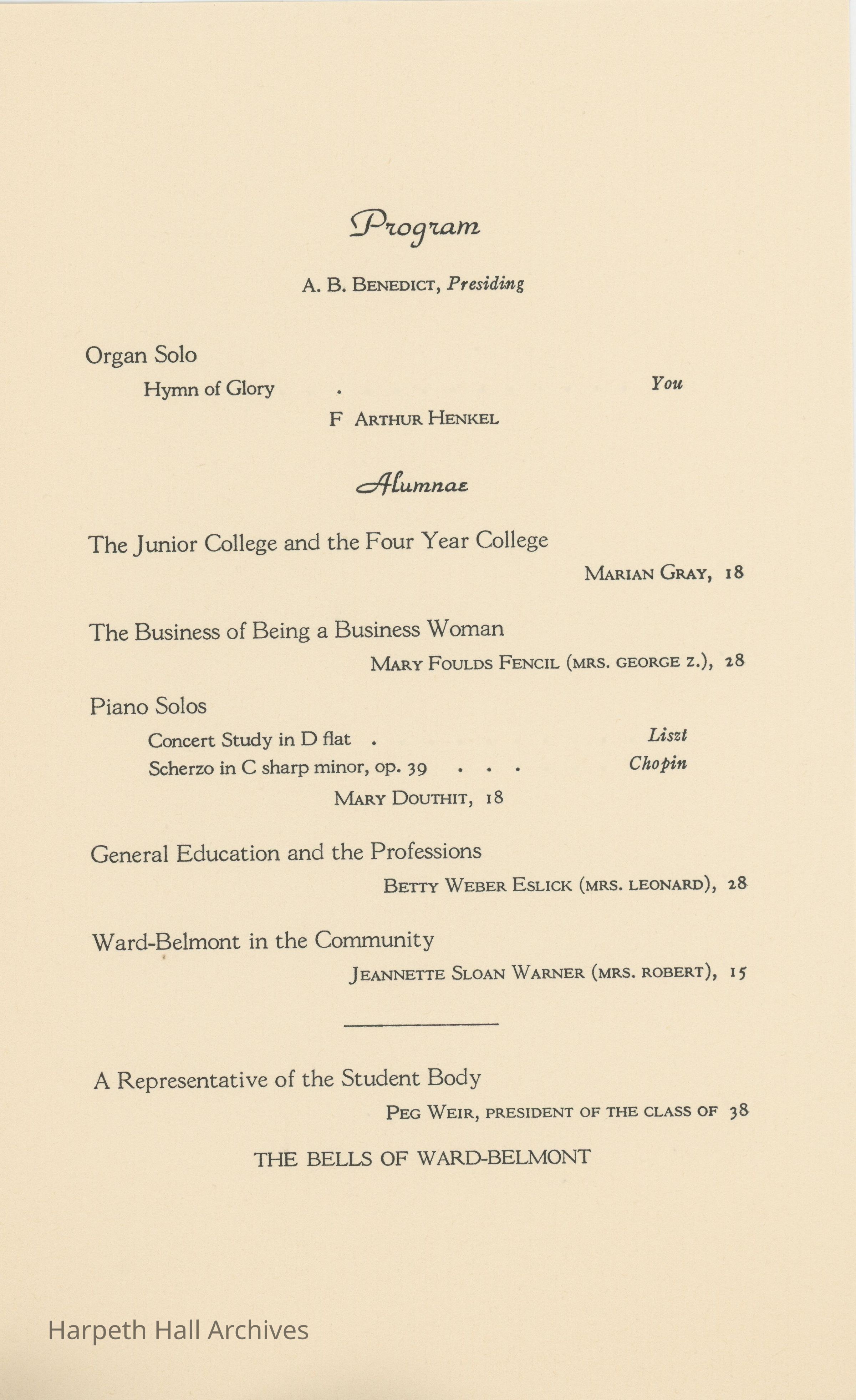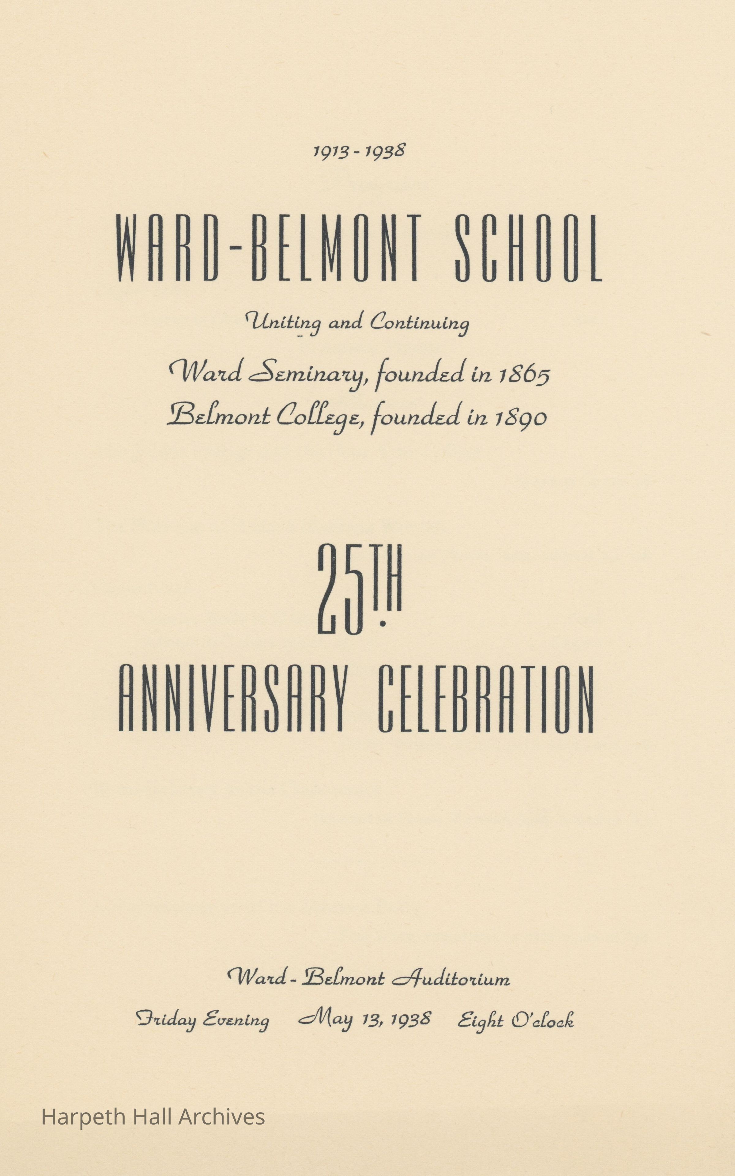 Program, Ward-Belmont, 1938, Anniversary, Celebration