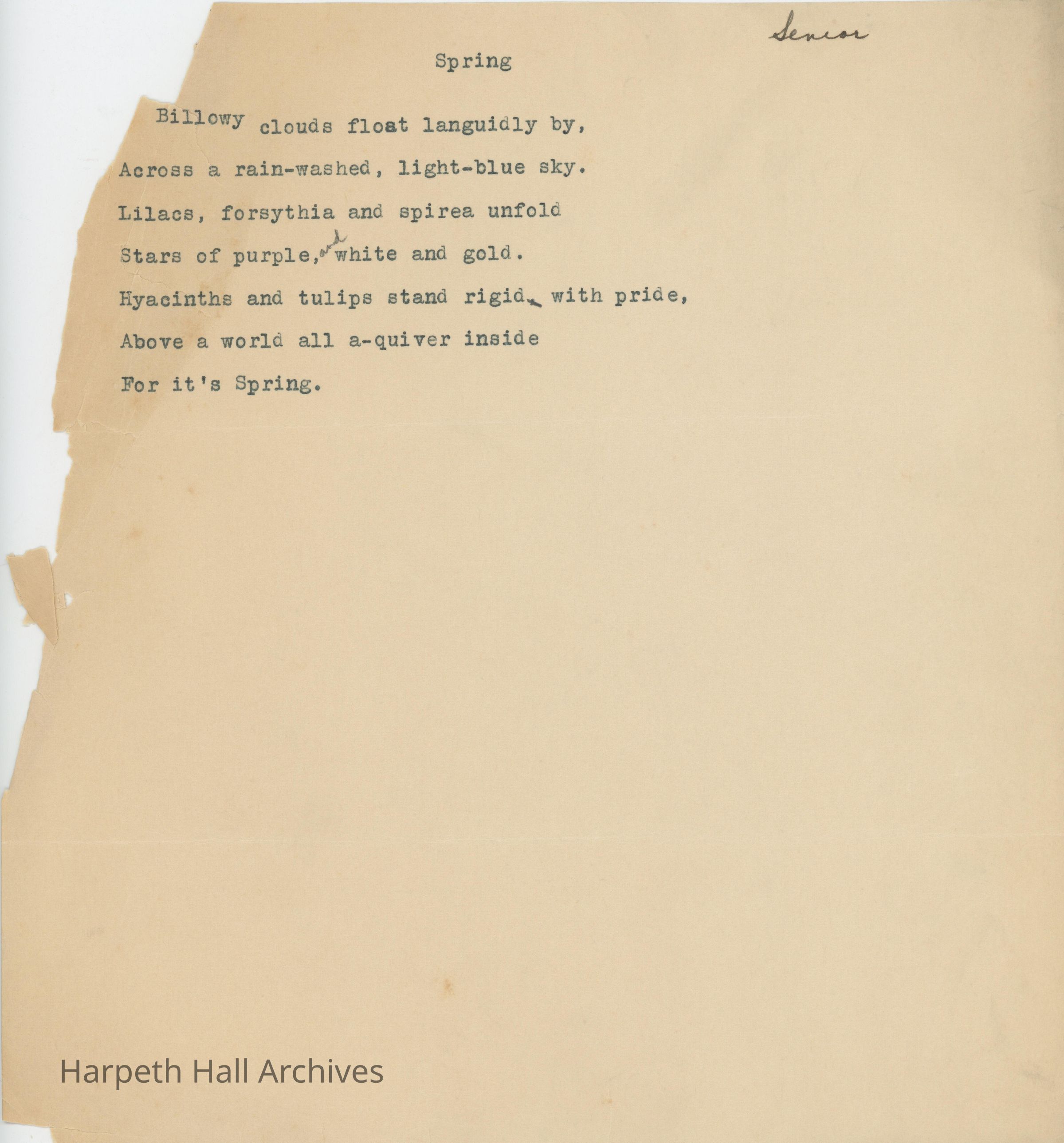 A poem entitled, "Spring" written by a Senior Ward-Belmont student.