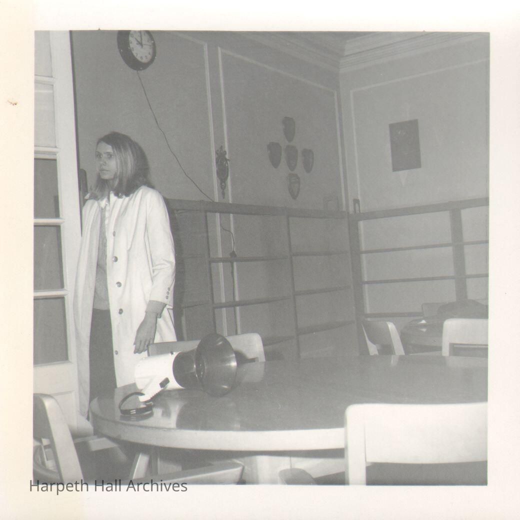 Student in white coat inside in the 1960's.