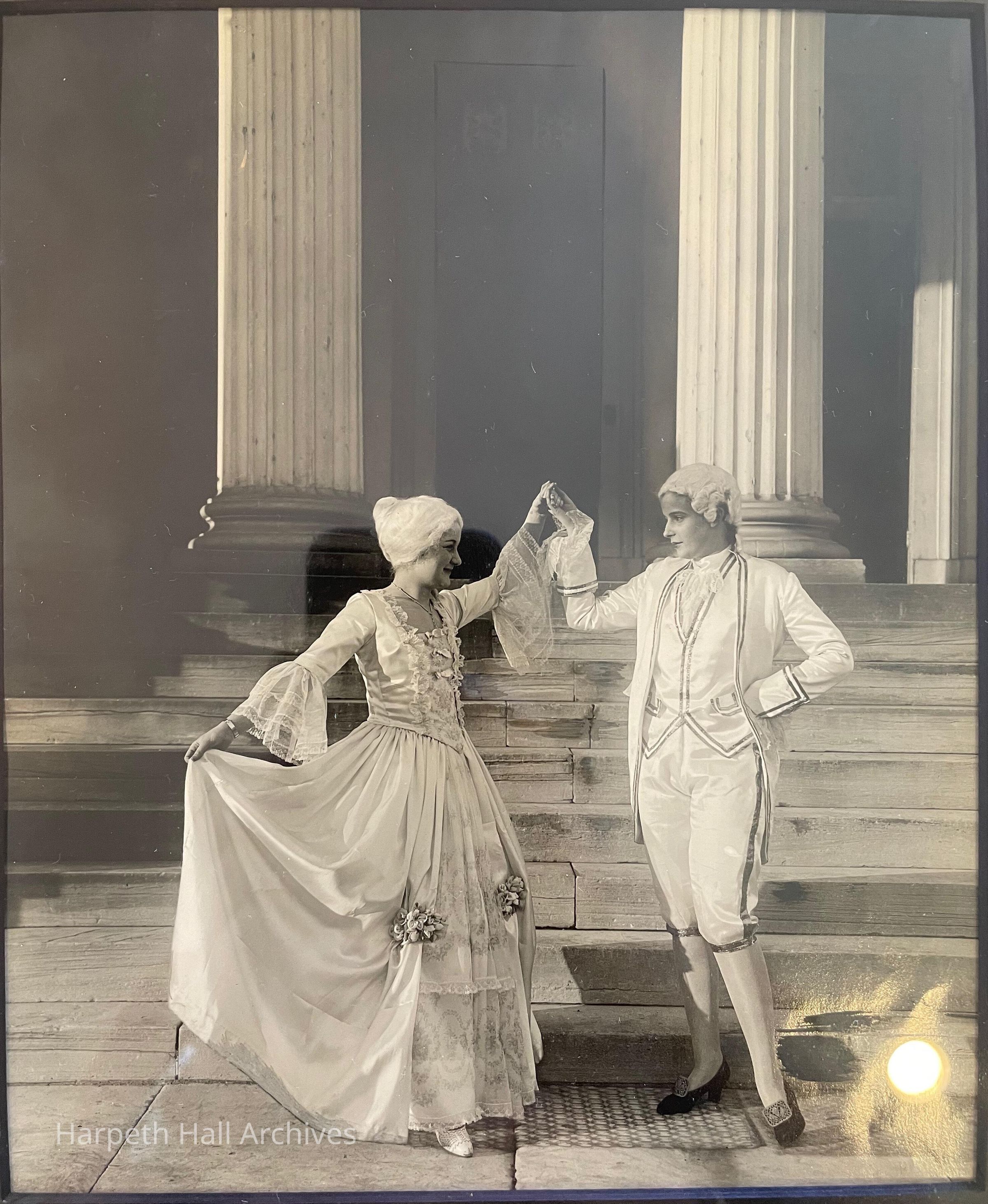 Students playing George and Martha Washington in front of Belmont Mansion.