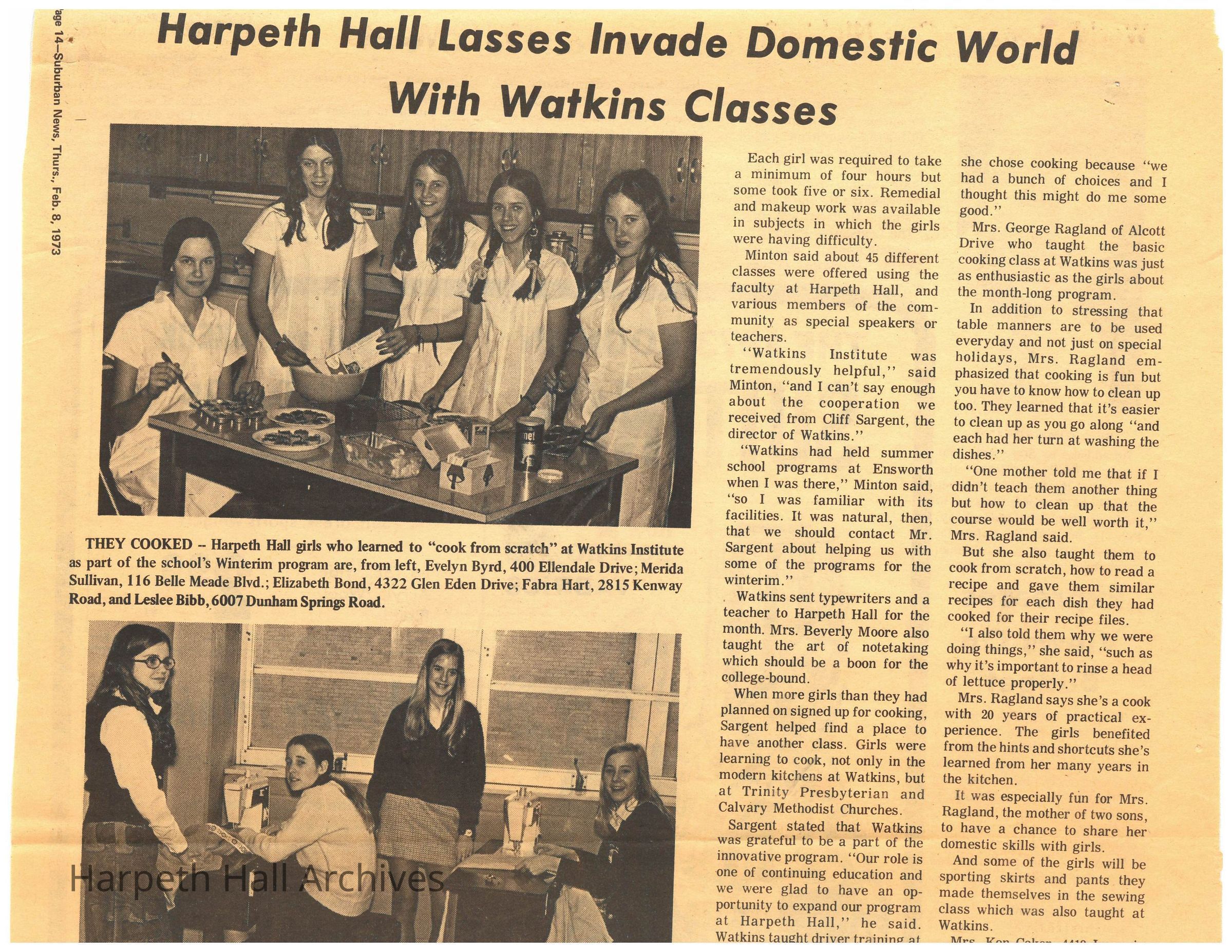 1973 Winterim Article: "Harpeth Hall Lasses Invade Domestic World With Watkins Classes"Entry/Object ID