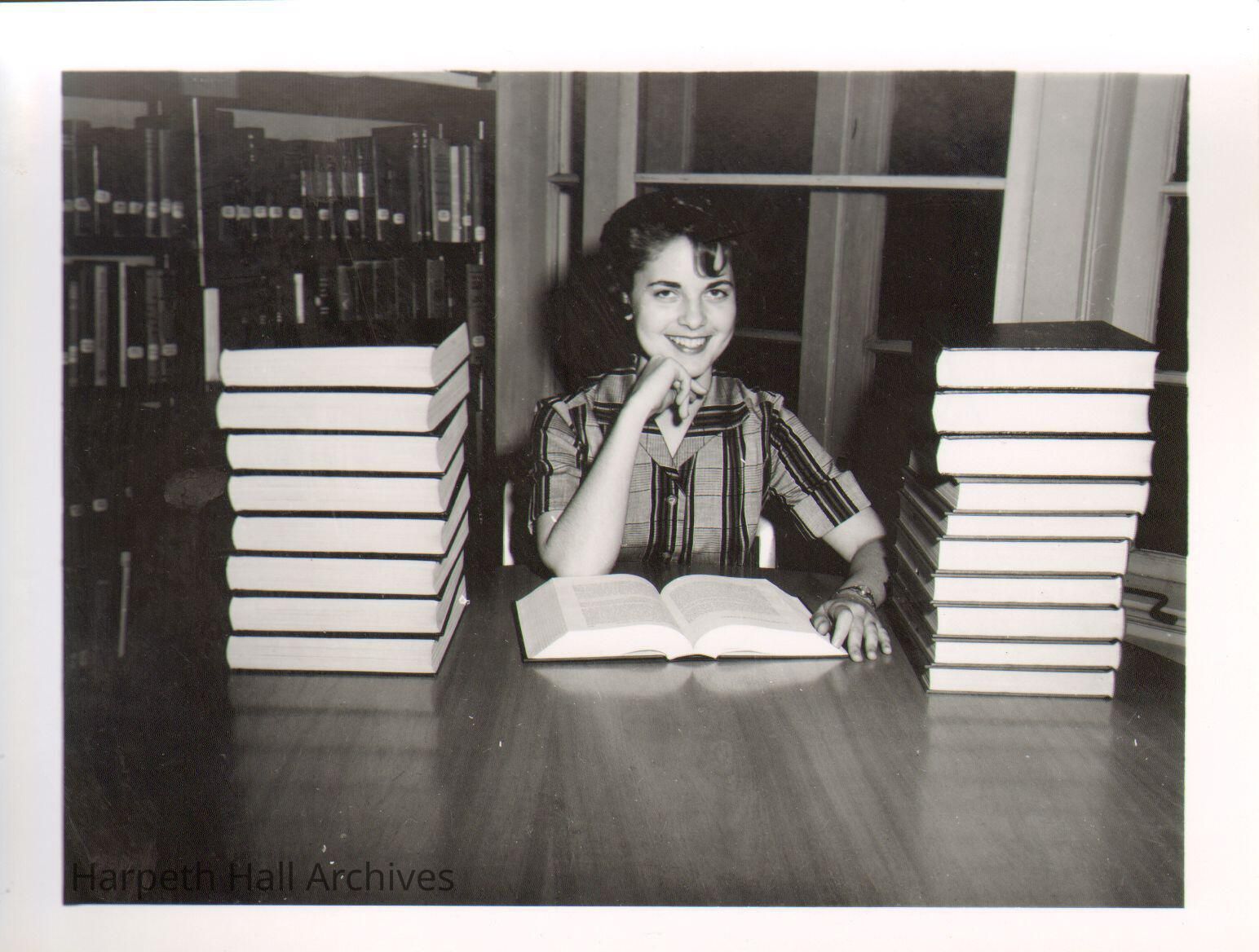 Doris Matthews poses with a stack of books in the 1960's.