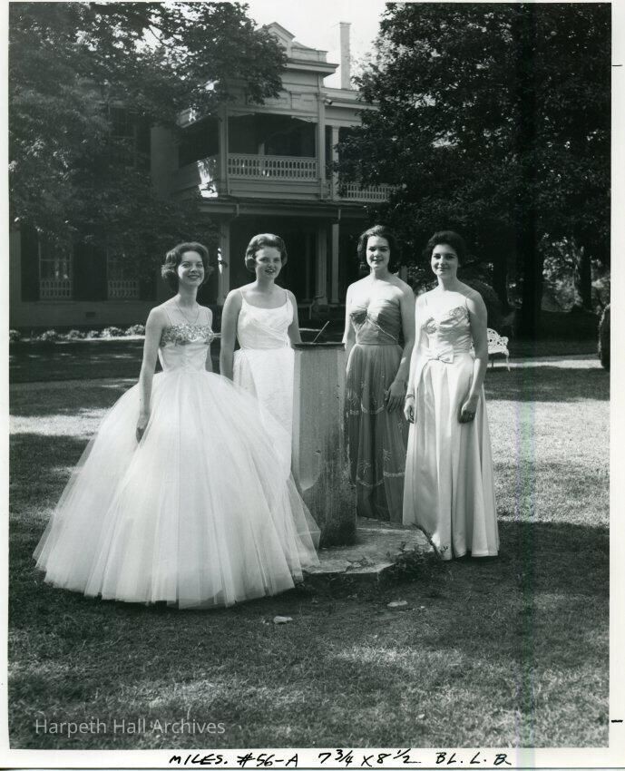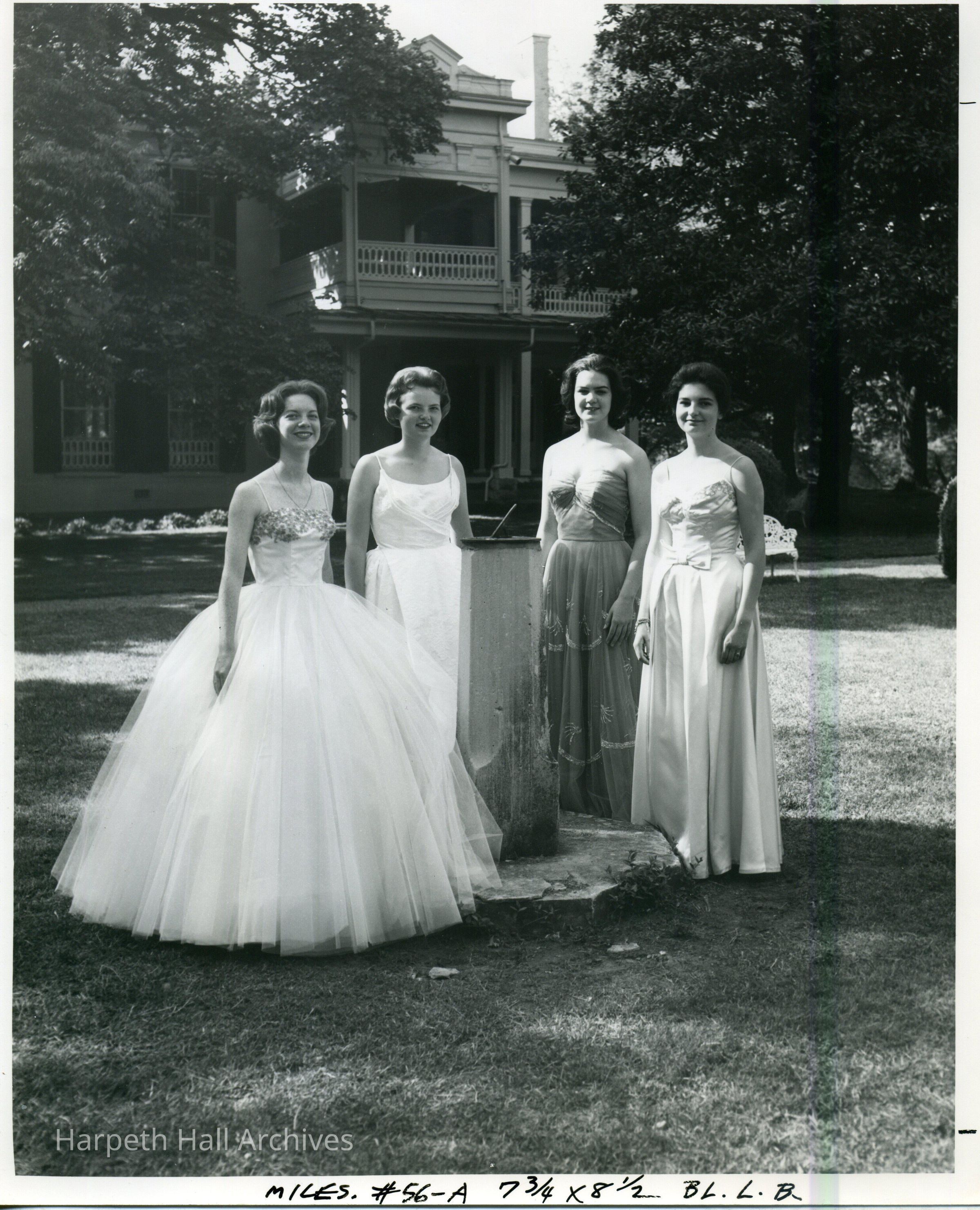 Group shot in 1962 of the Senior Superlatives including, Cherry Reid Shelton (1962, most talented), Susan Sudduth Hiller (1962, most athletic), Mary "Polly" Cussler (1962, most intellectual) and Silvia Wybert Olarte (1962, most likely to suceed).Collection