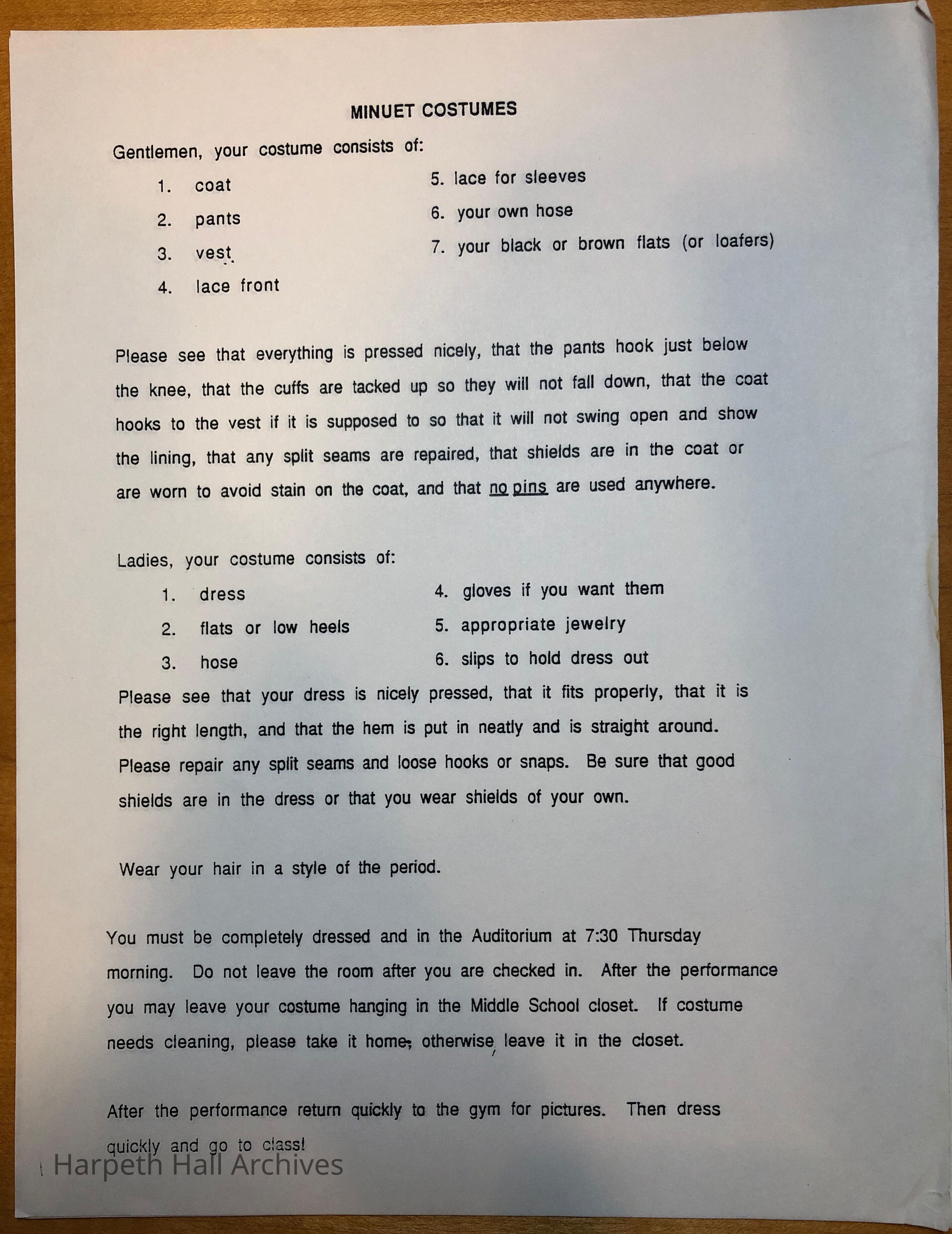 The George Washington Day Celebration was a tradition that began at Belmont College for Young Women, developed into a costume ball and dance at Ward-Belmont, and was transferred to Harpeth Hall, where it continued as a special all-school program performed by Middle School students until 2020.Collection