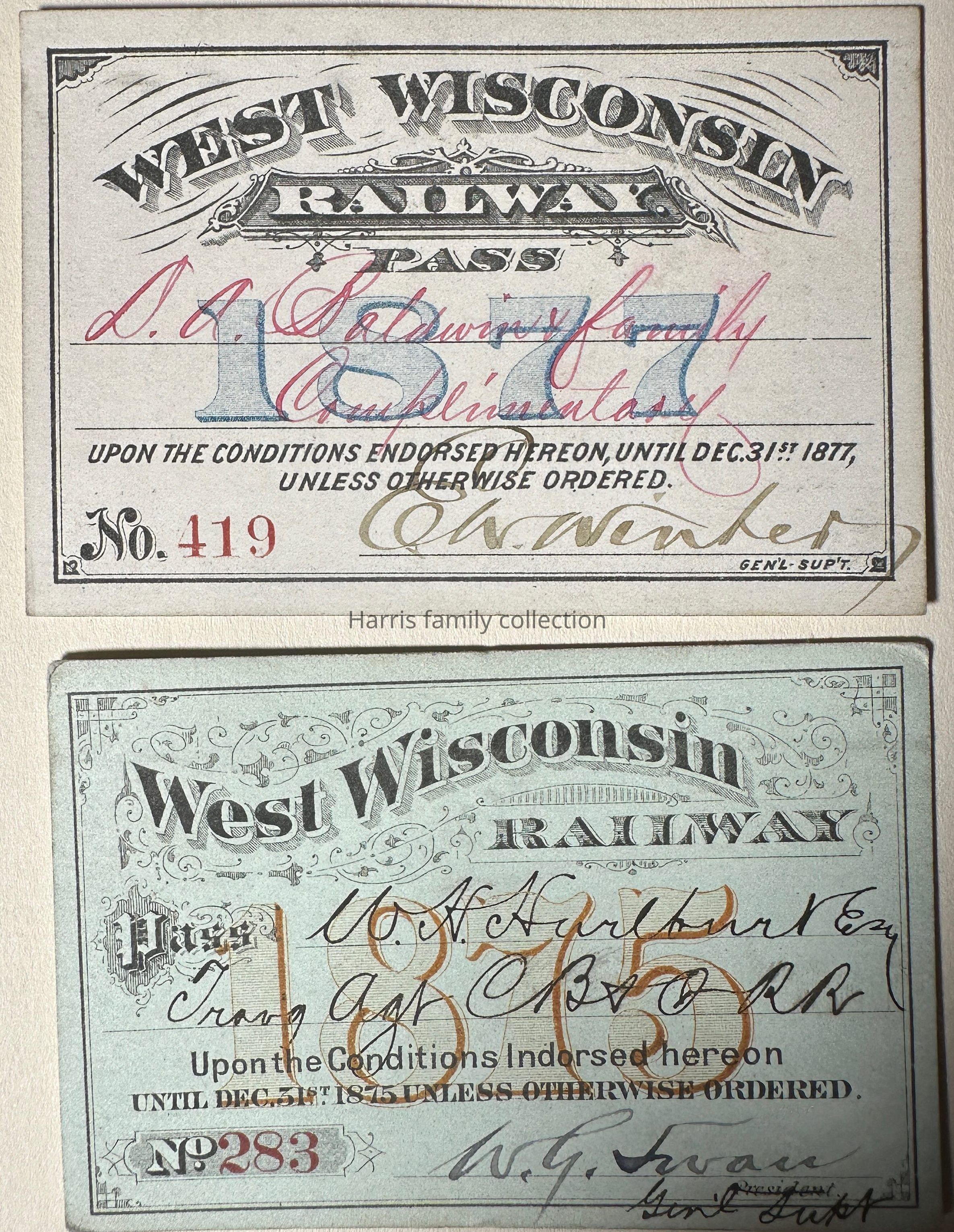 1870s West Wisconsin railway passes