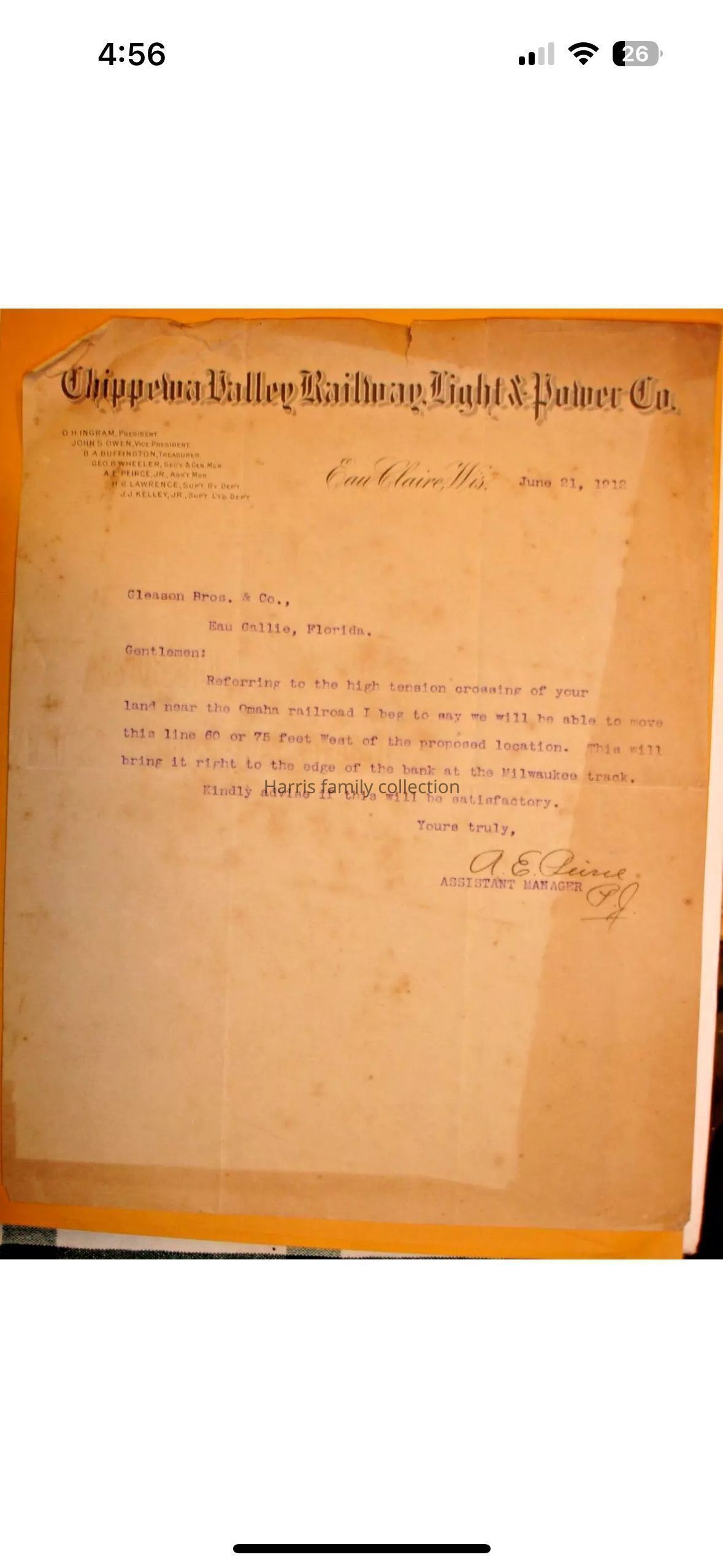 1912 Chippewa Valley Railway letterhead