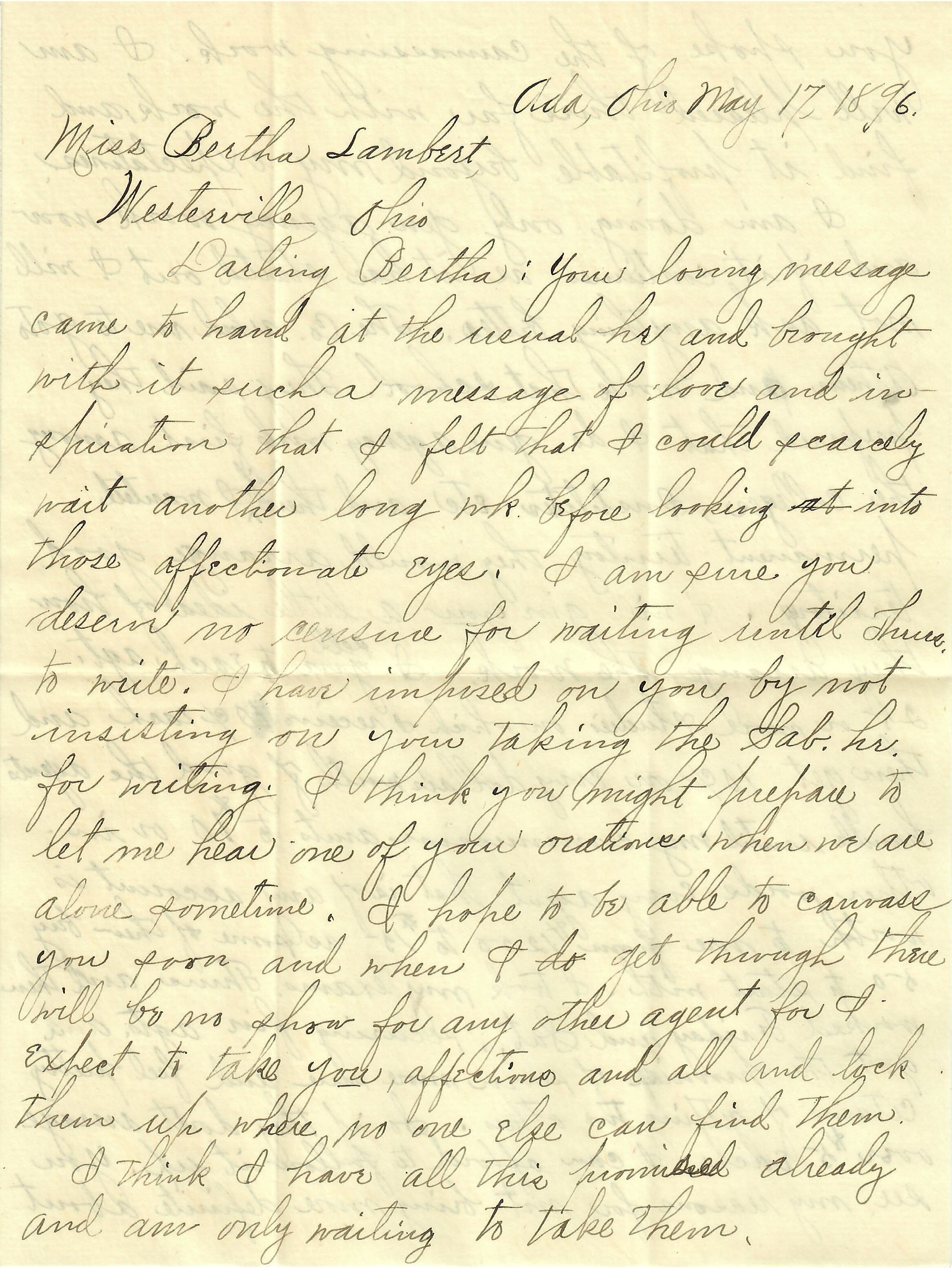 Ada, Ohio May 17, 1896.