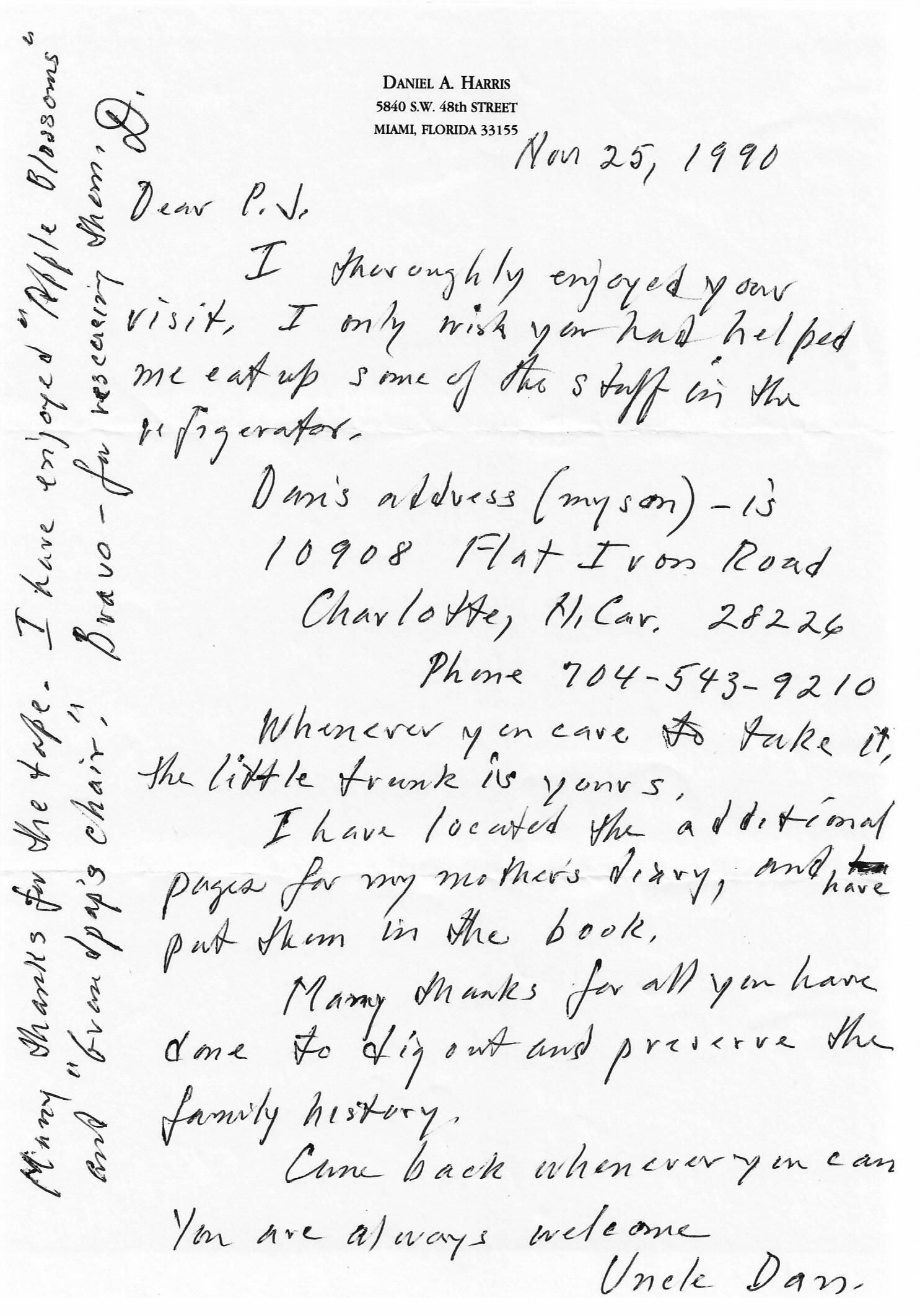 AU Harris, Daniel Alfred - 1990-11-25 letter to Paul J. Harris Jr.Entry/Object ID