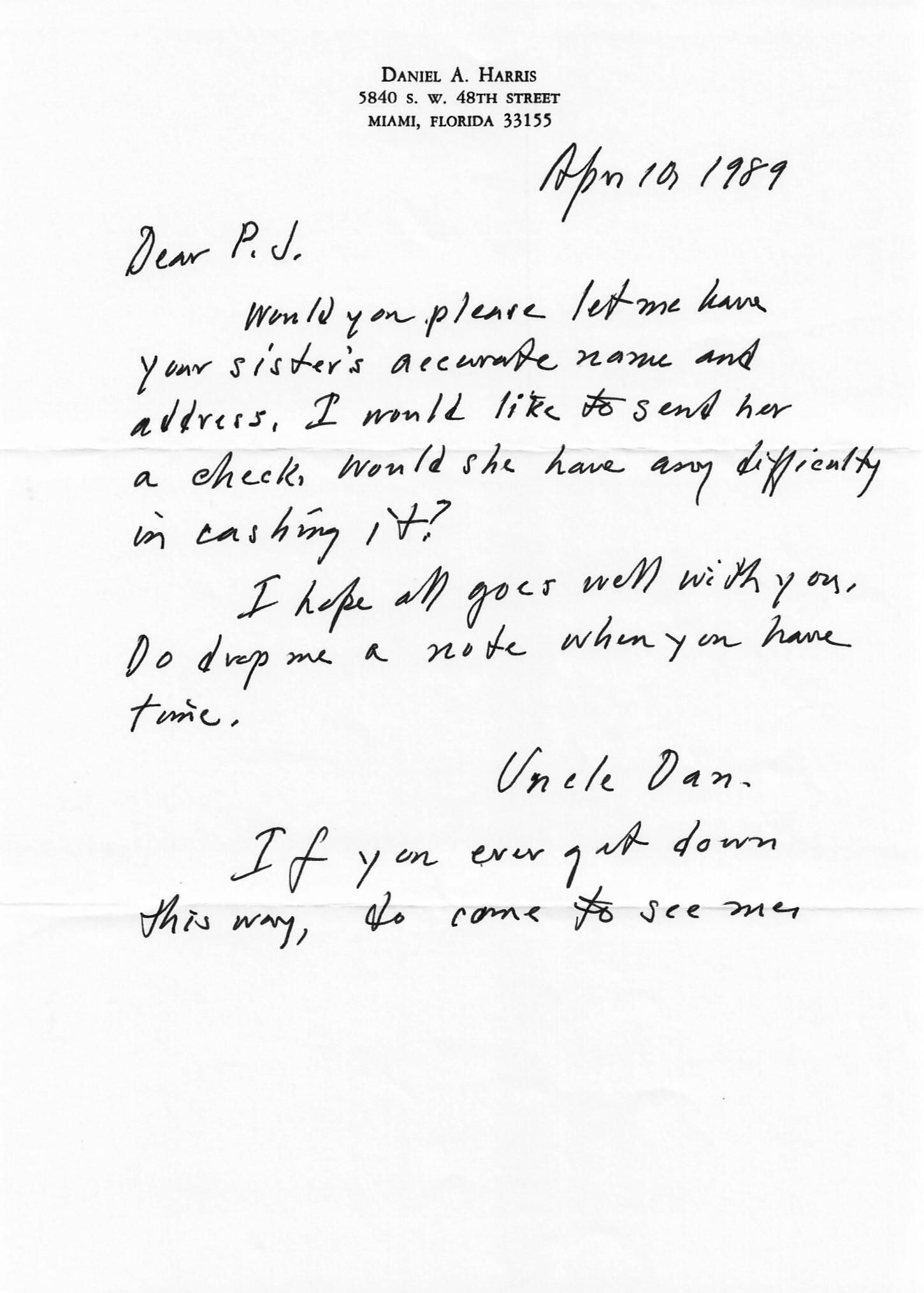 AU Harris, Daniel Alfred - 1989-04-10 letter to Paul J. Harris Jr.Entry/Object ID