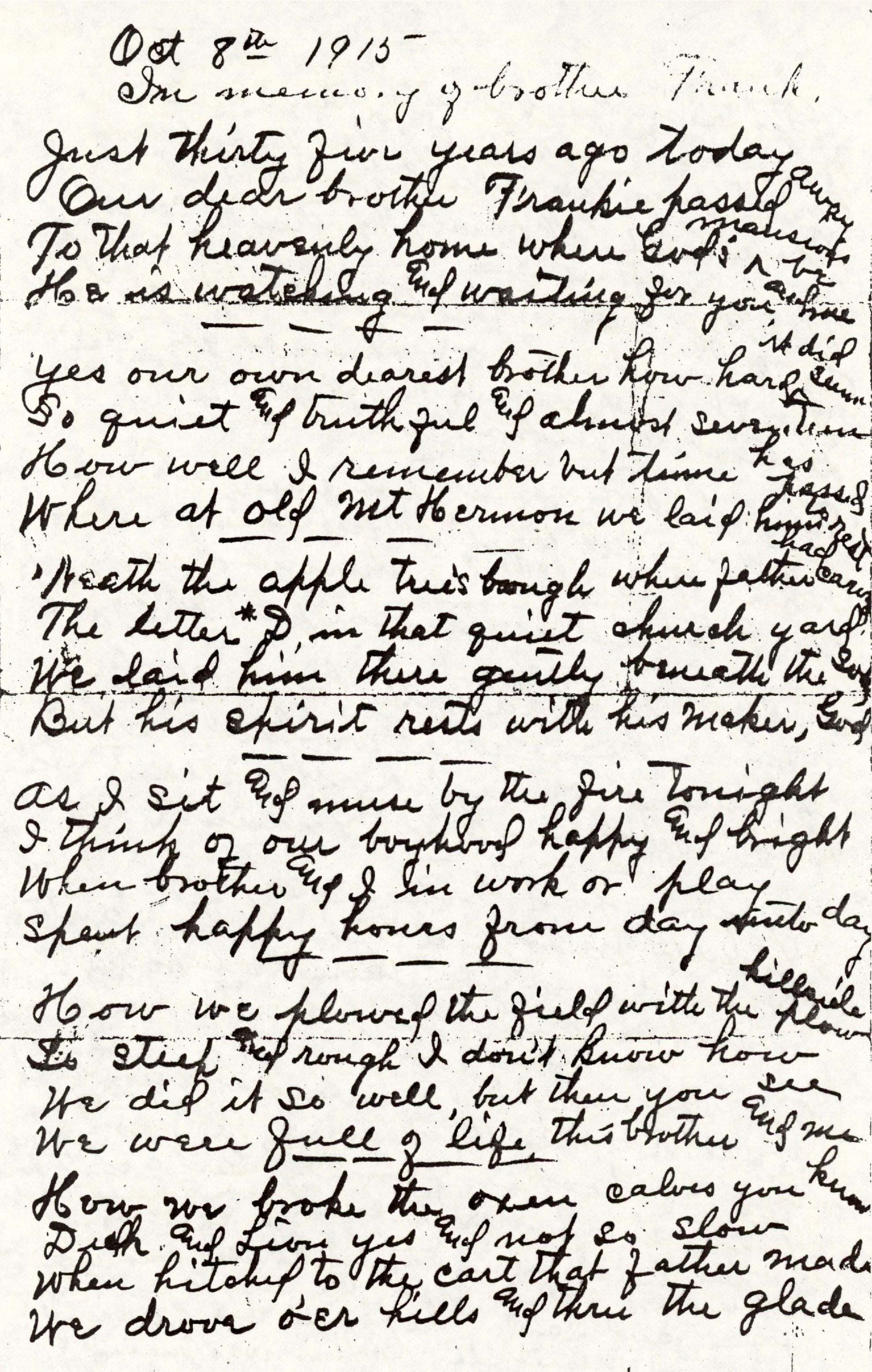 AU Lambert, Alva Elwood - 1915-10-08 - 'In Memory of Brother Frank'Entry/Object ID