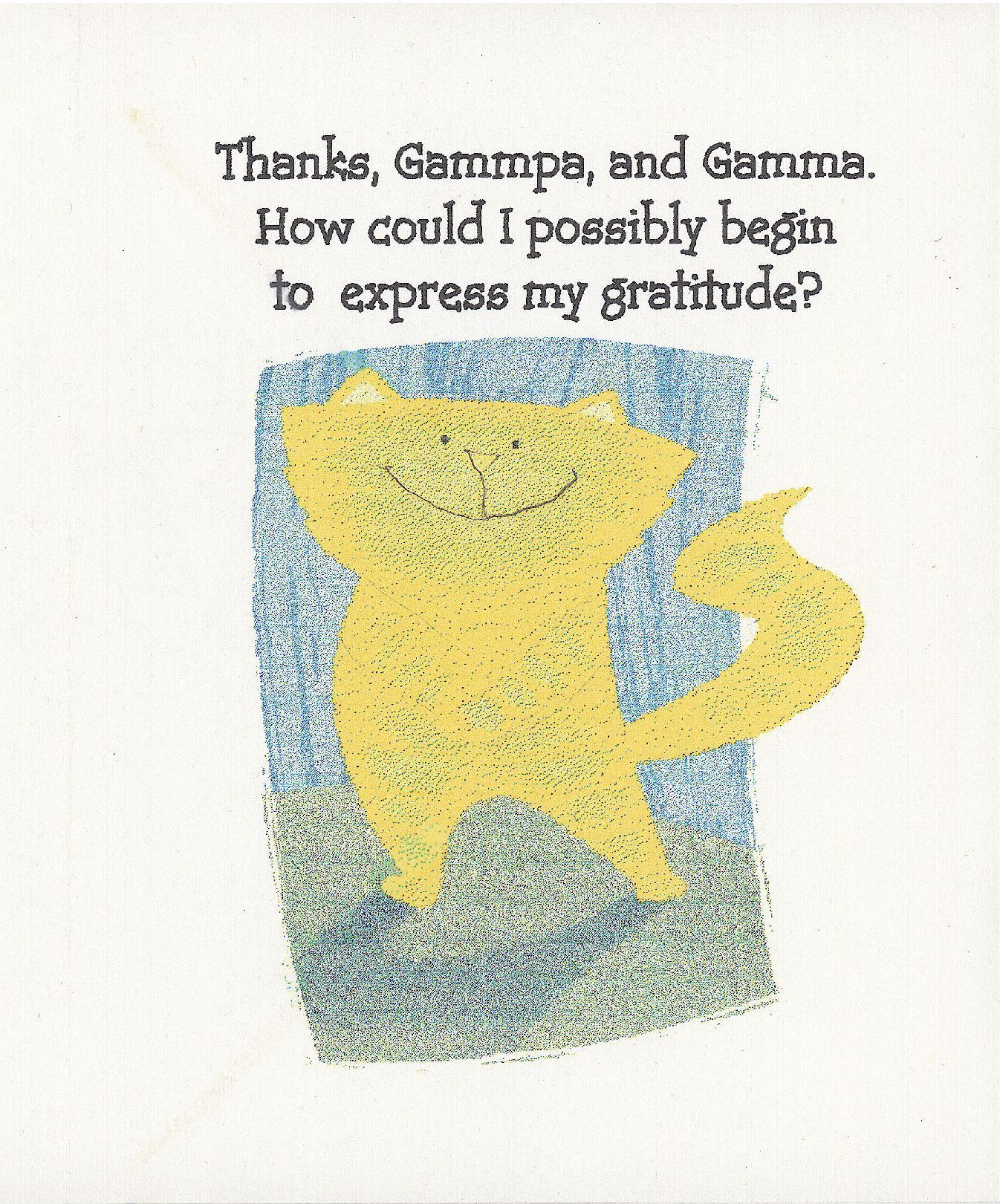 Thank, Gammpa, and Gamma. How could I possible begin to express my gratitude?