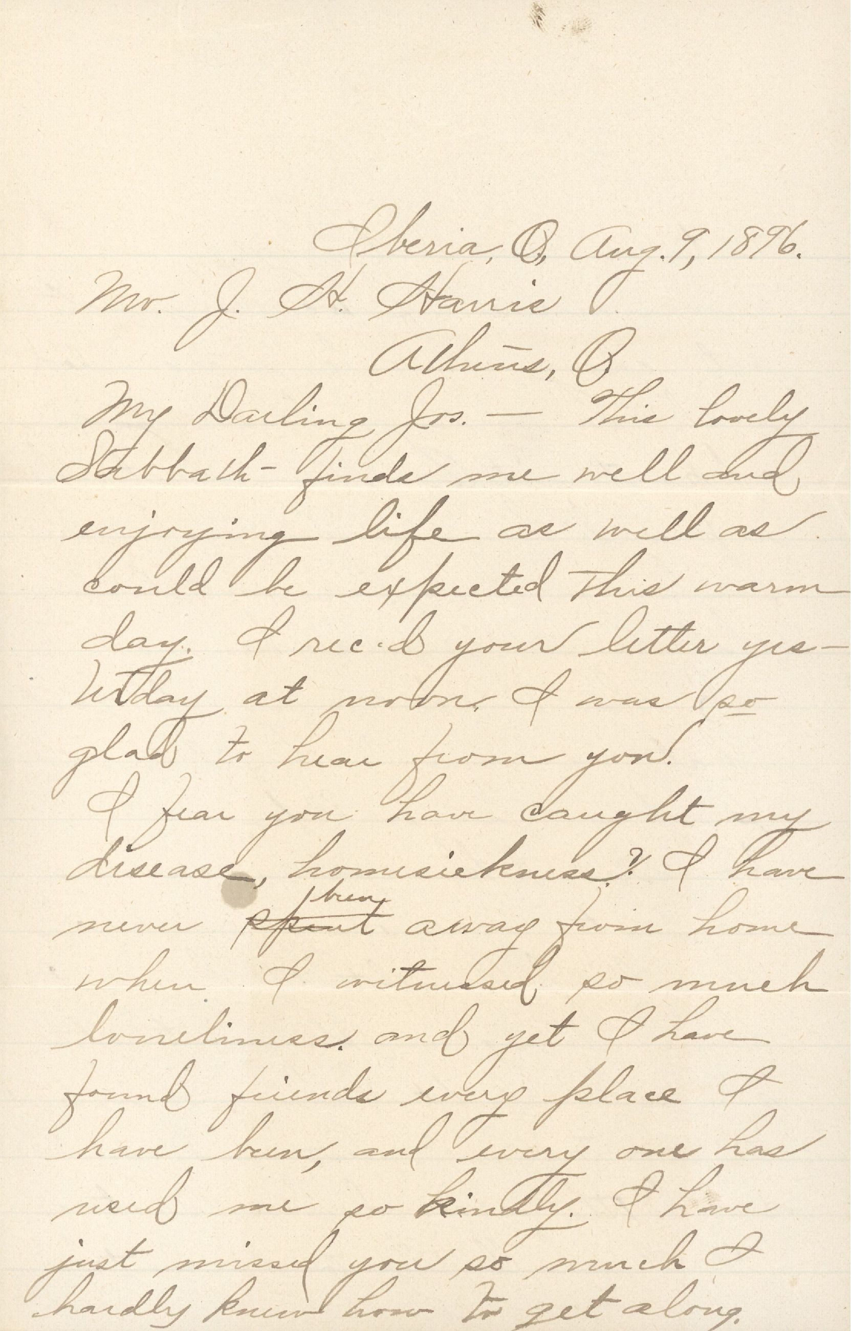 My Darling Jos. — This lovely Sabbath finds me well and enjoying life as well as could be expected this warm day. I rec'd your letter yesterday at noon. I was so glad to hear from you.