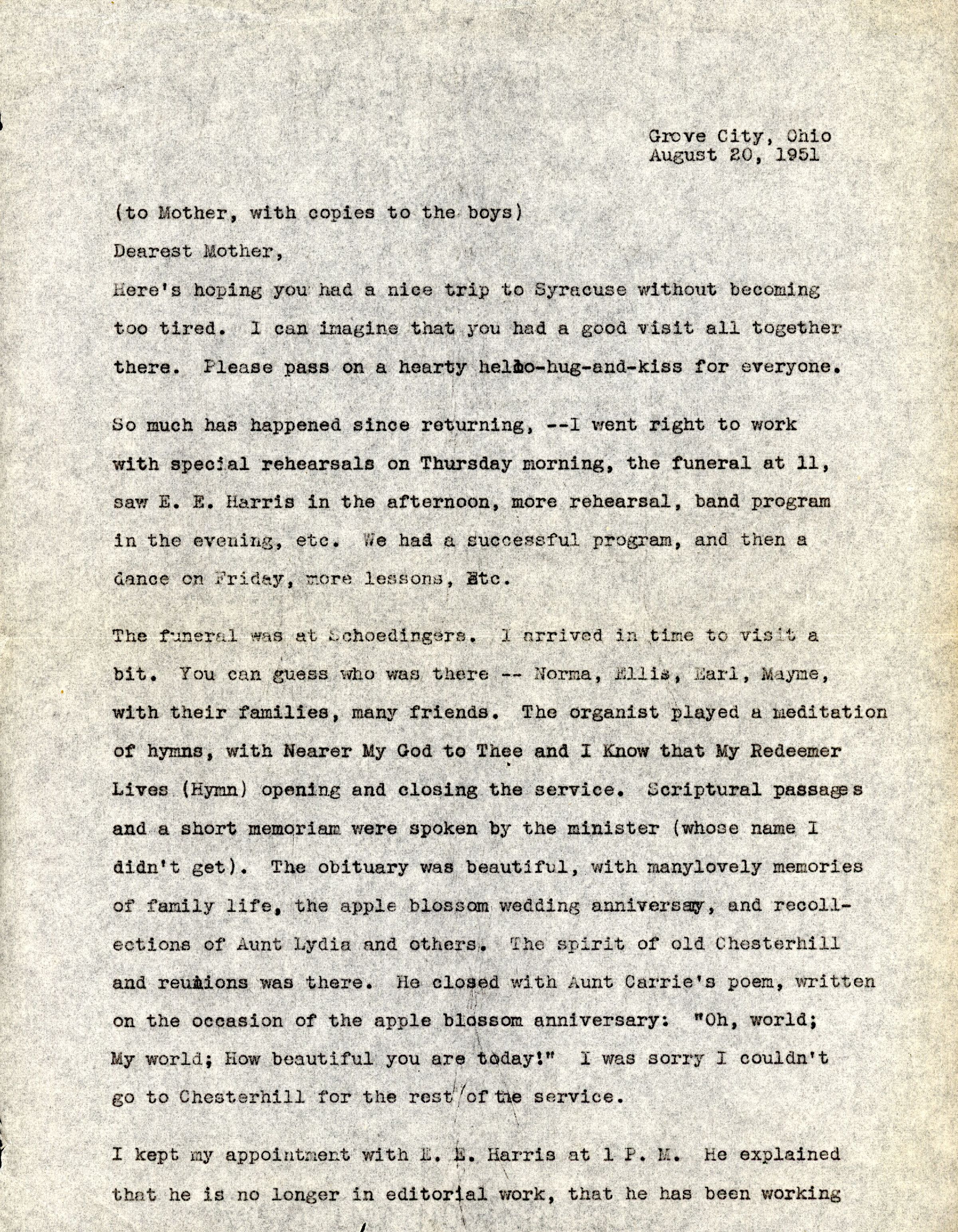 AU Harris, Richard Lambert - 1951-08-20 letter to Bertha Elizabeth (Lambert) HarrisEntry/Object ID