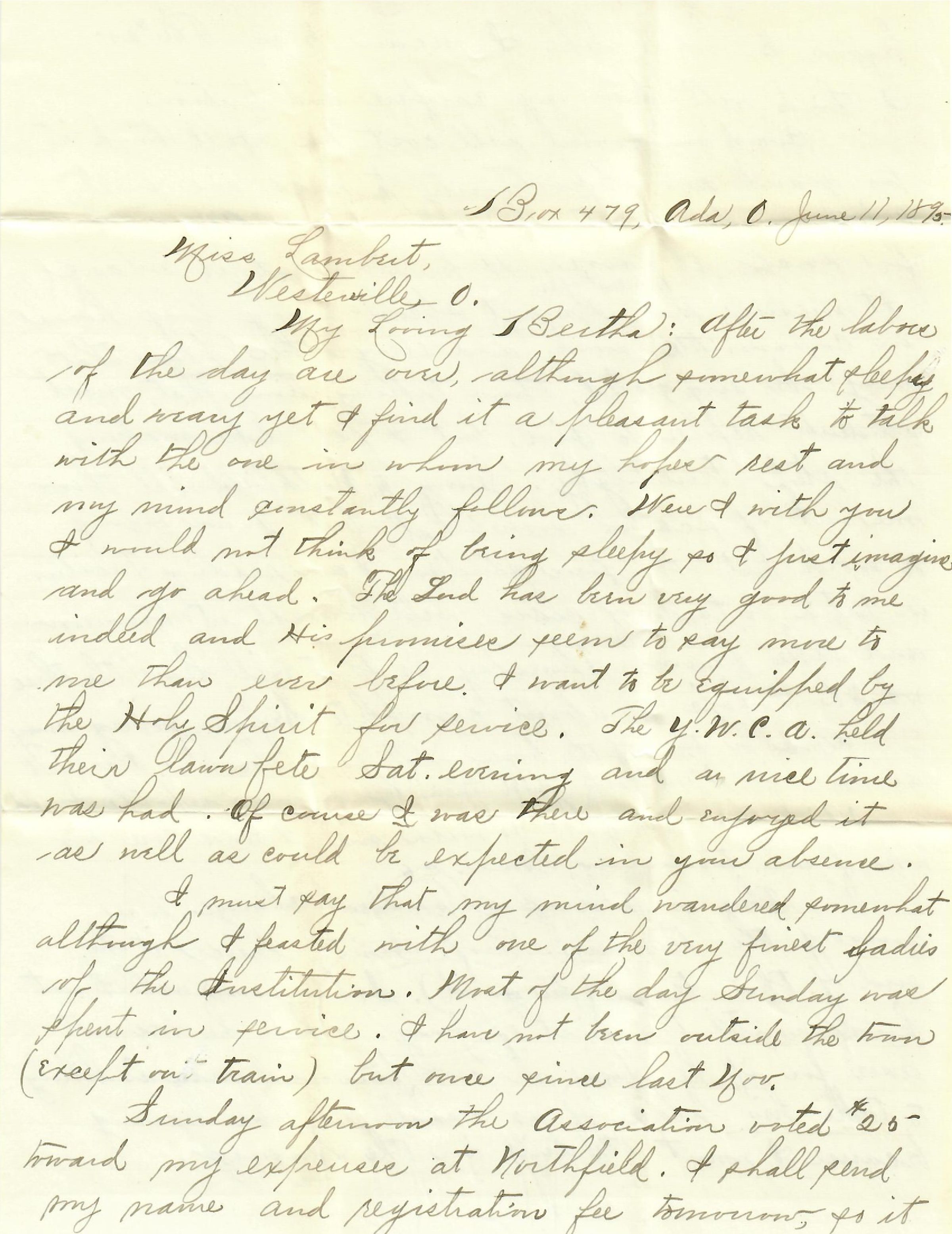 [Ada, OH, to Miss Bertha Lambert, Westerville, Ohio]