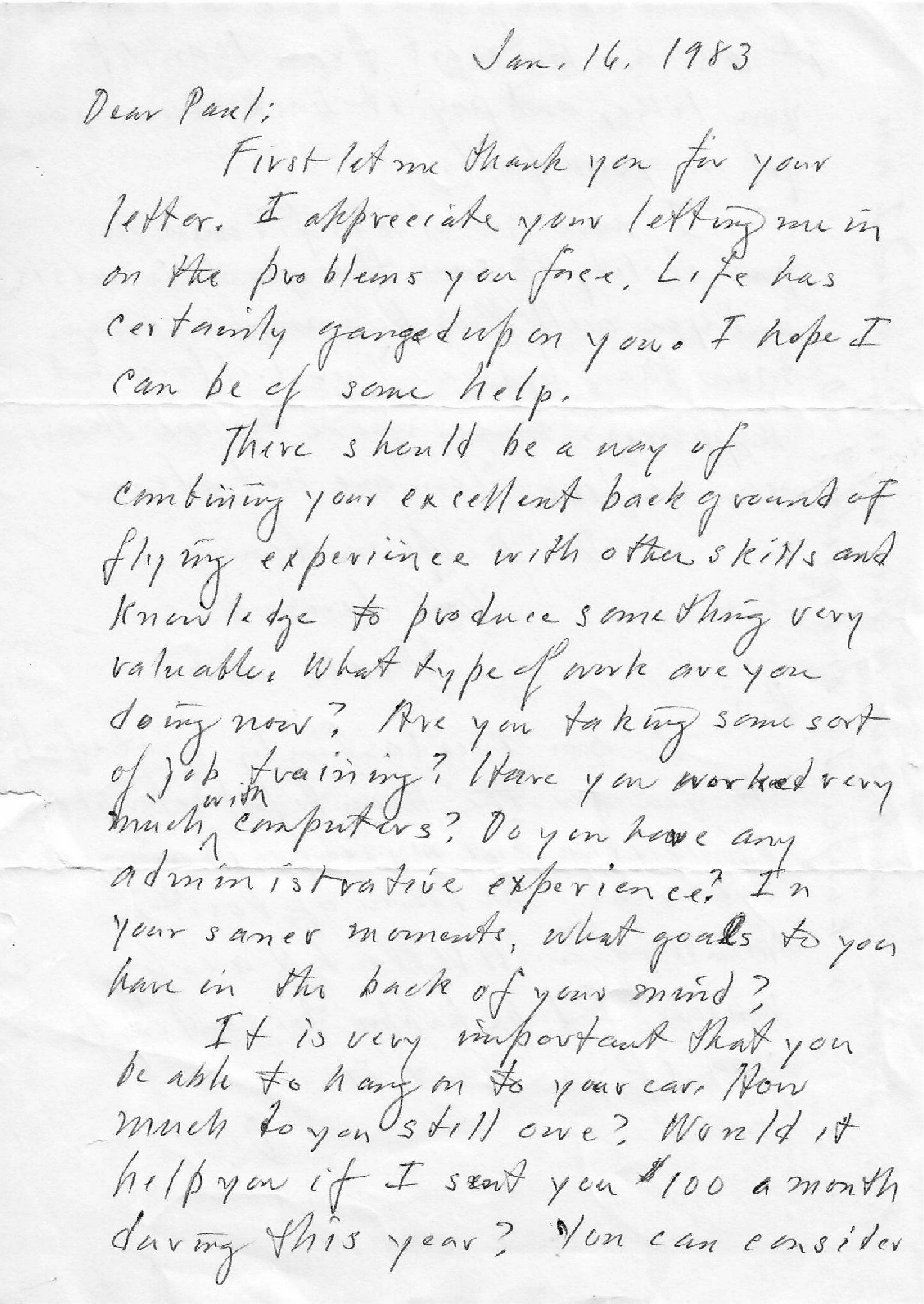 AU Harris, Daniel Alfred - 1983-01-16 letter to Paul J. Harris Jr.Entry/Object ID