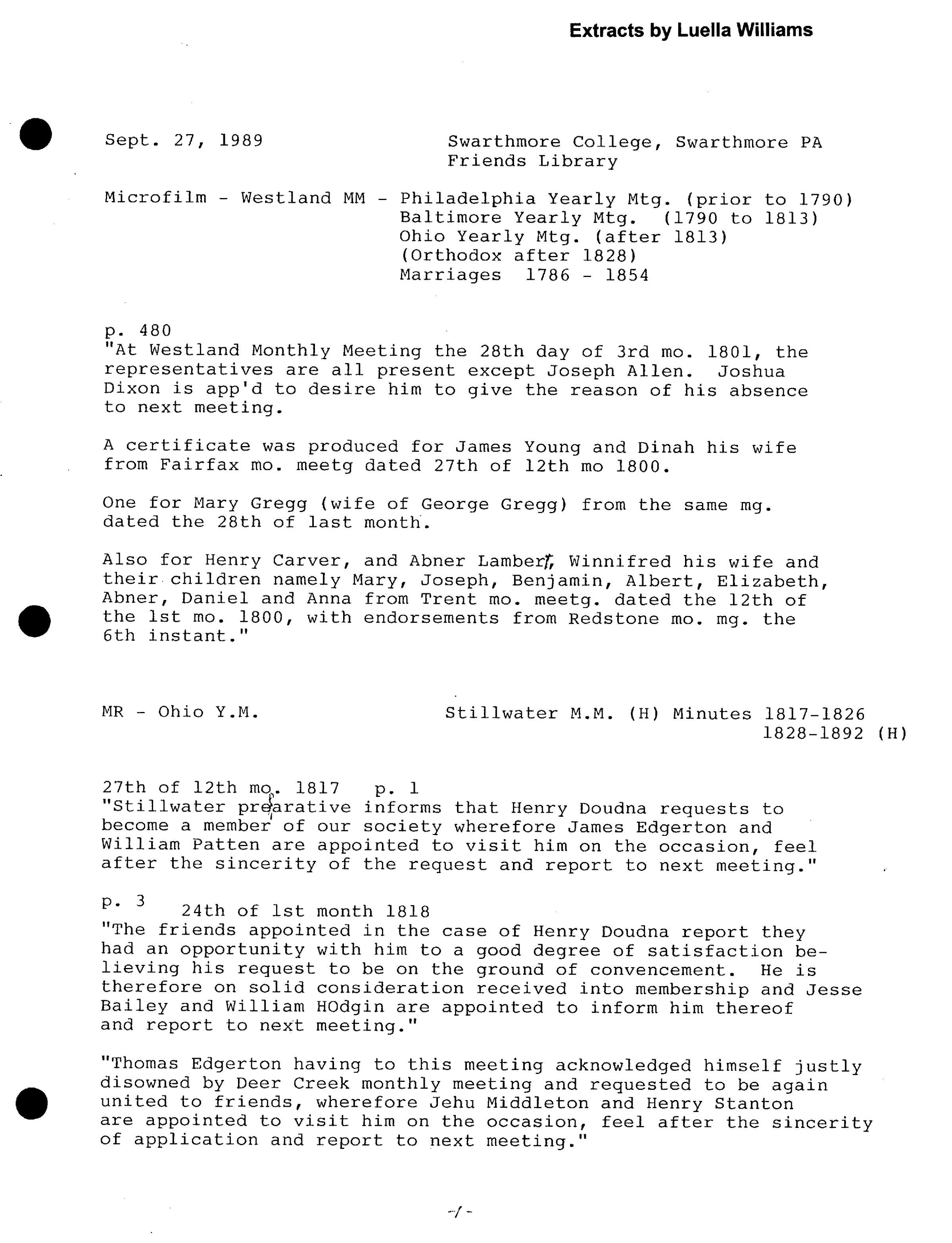 AU Lambert, Luella Mae [Williams] - 1989-09-27 Extracts of Quaker RecordsEntry/Object ID