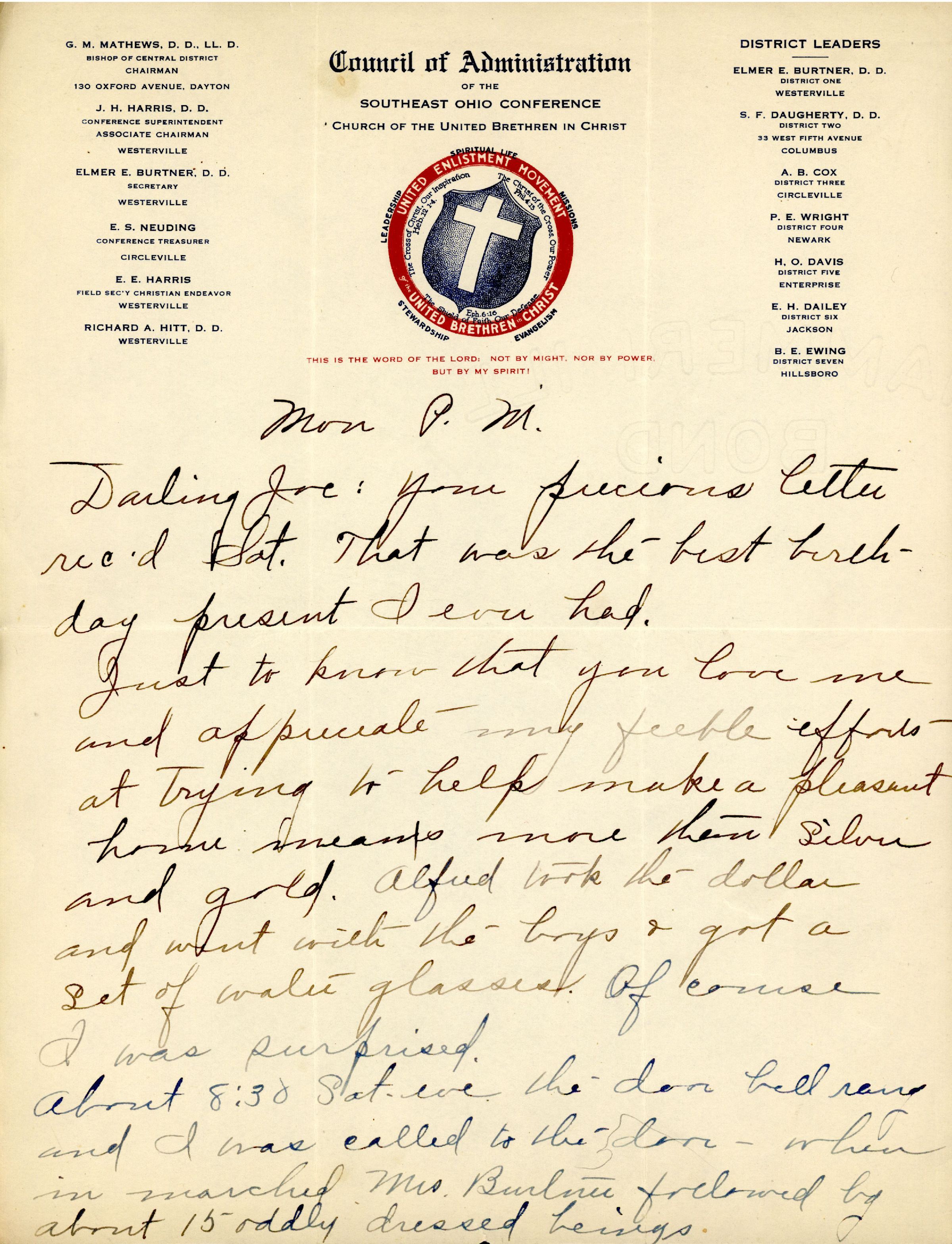Darling Joe: Your precious letter rec'd Sat. That was the best birthday present I ever had.