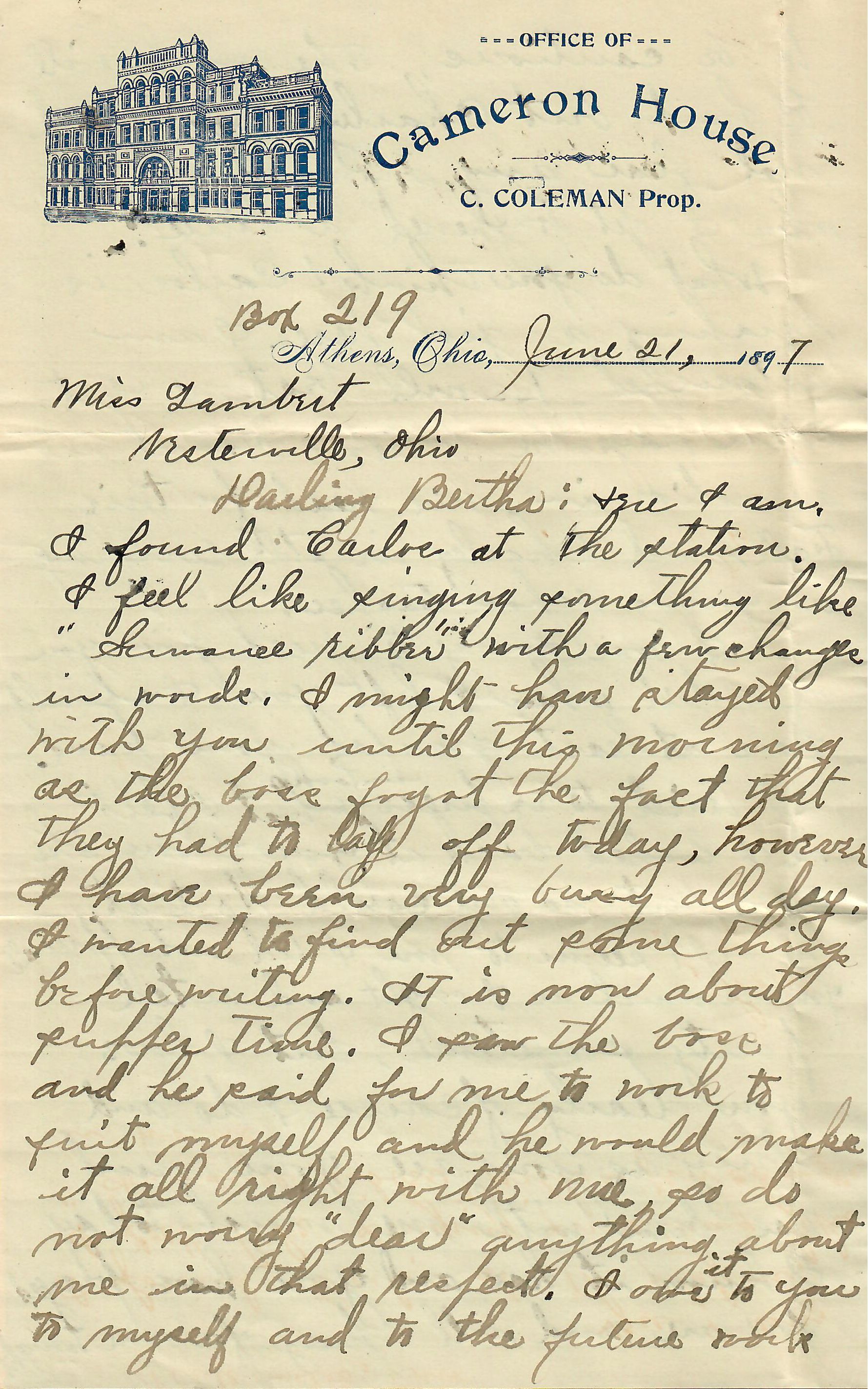 Box 219, Athens, Ohio, June 21, 1897