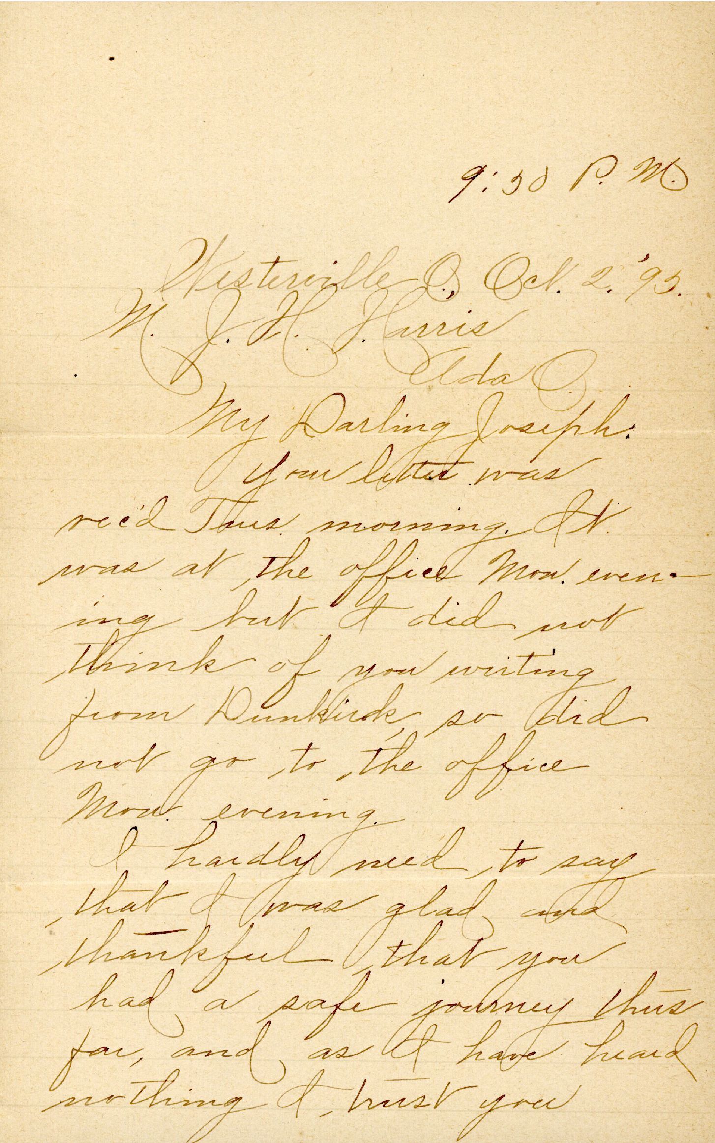 I hardly need to say that I was glad and thankful that you had a safe journey thus far, and as I have heard nothing I trust you landed at Ada safe and sound, and hope you are enjoying school as usual.