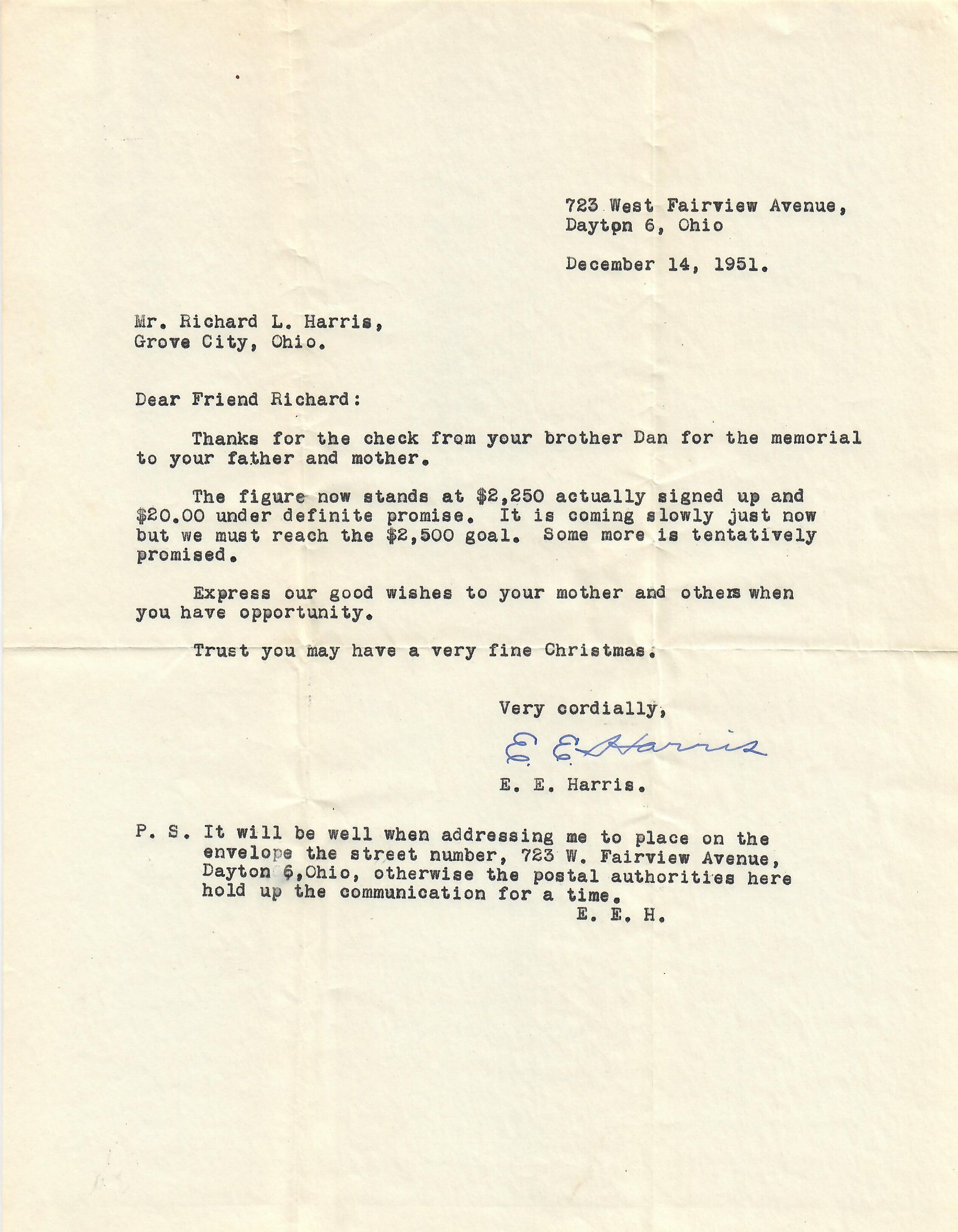 AU Harris, E. E. - 1951-12-14 letter to Richard Lambert HarrisEntry/Object ID