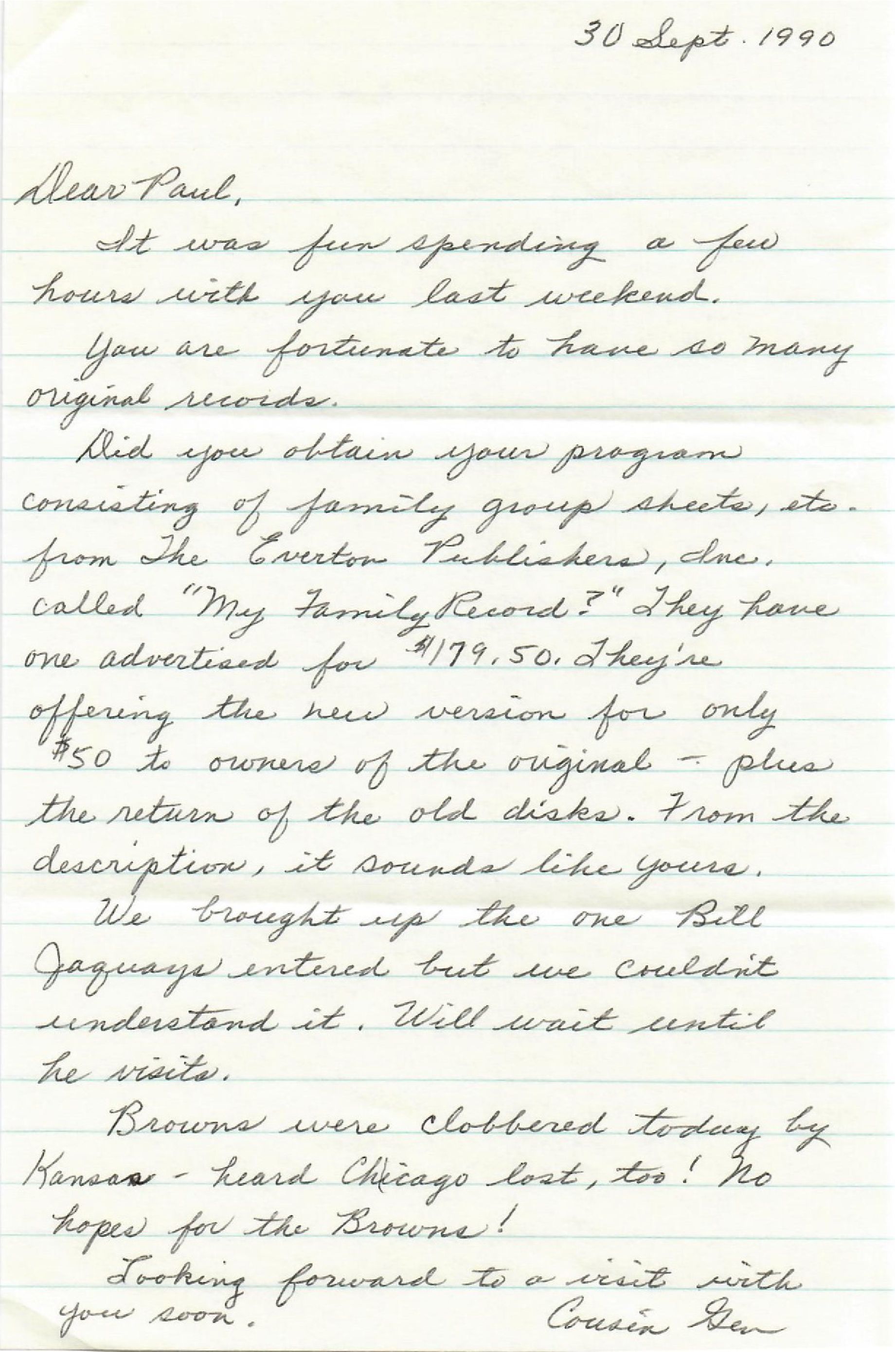 AU Ellis, Genevieve [Gross] - 1990-09-30 letter to Paul J. Harris Jr.Entry/Object ID
