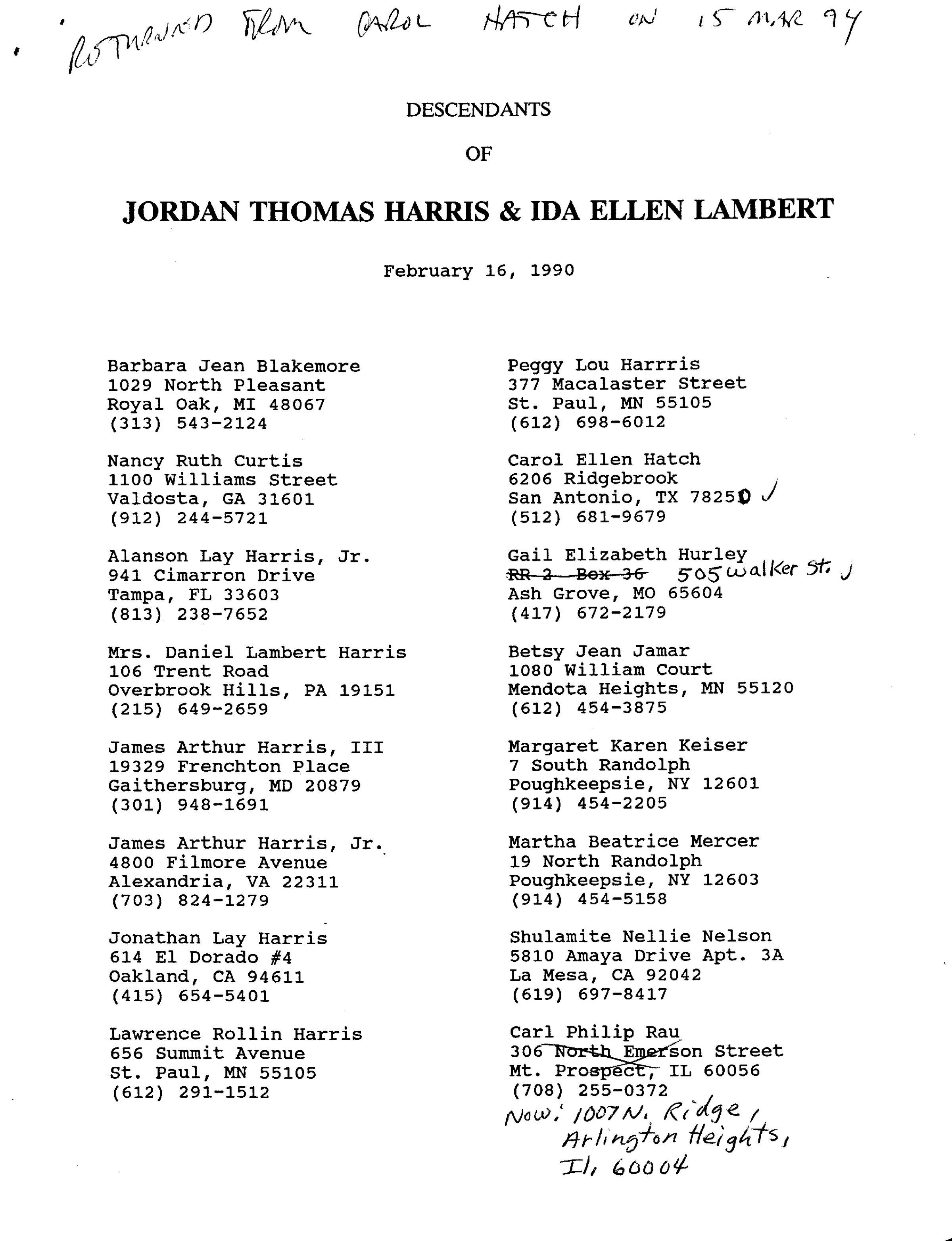 JORDAN THOMAS HARRIS & IDA ELLEN LAMBERT