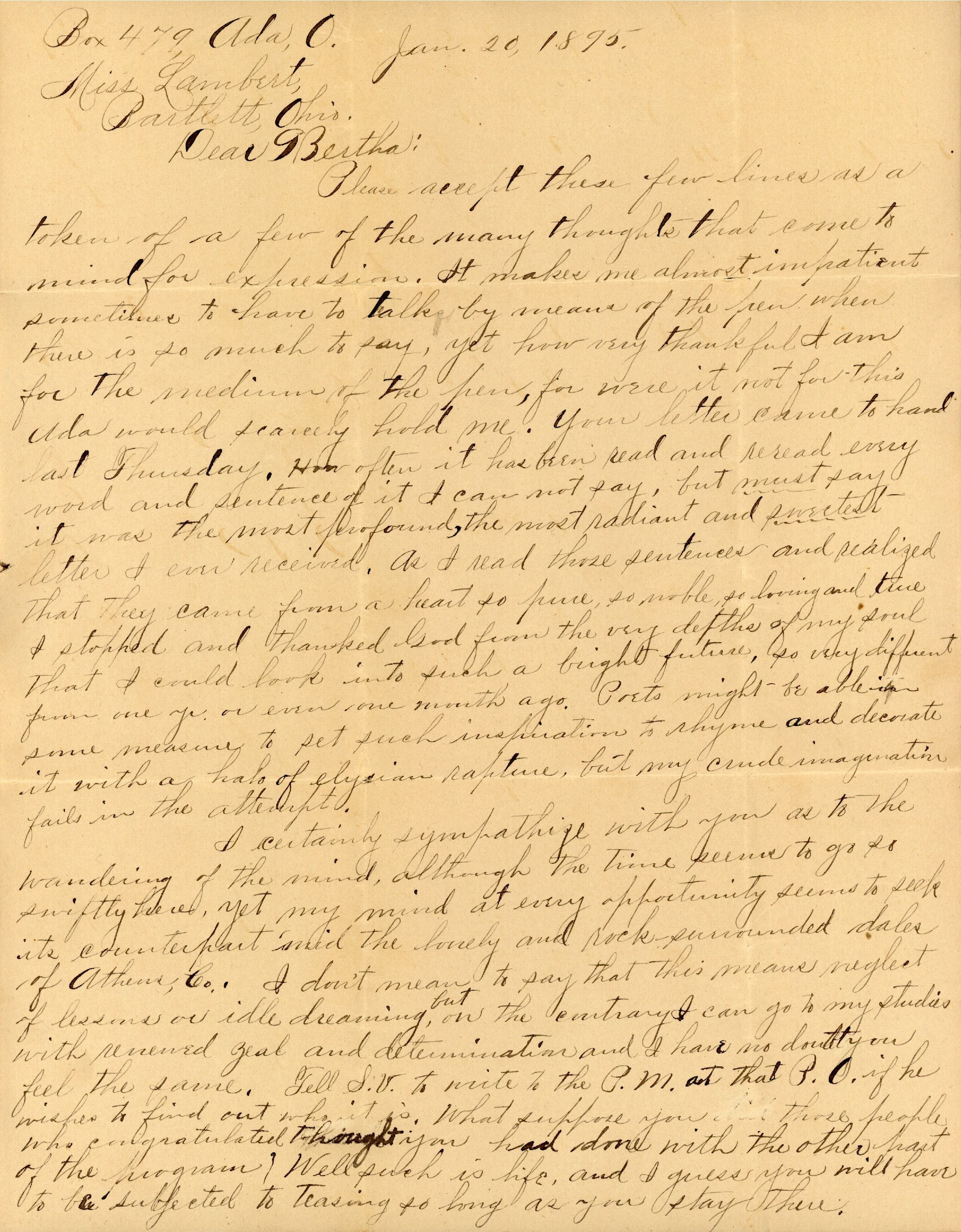 Box 479, Ada, O. Jan. 20, 1895.